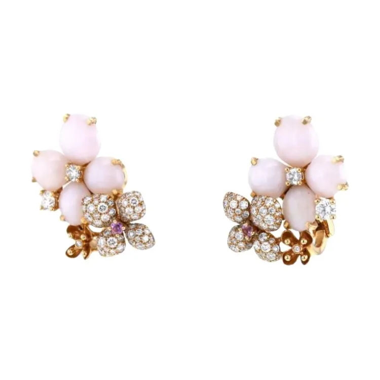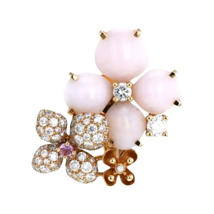 샤무트 18K 로즈 골드, 오팔, 다이아몬드 패턴 반지 여성 핑크 - POIZON