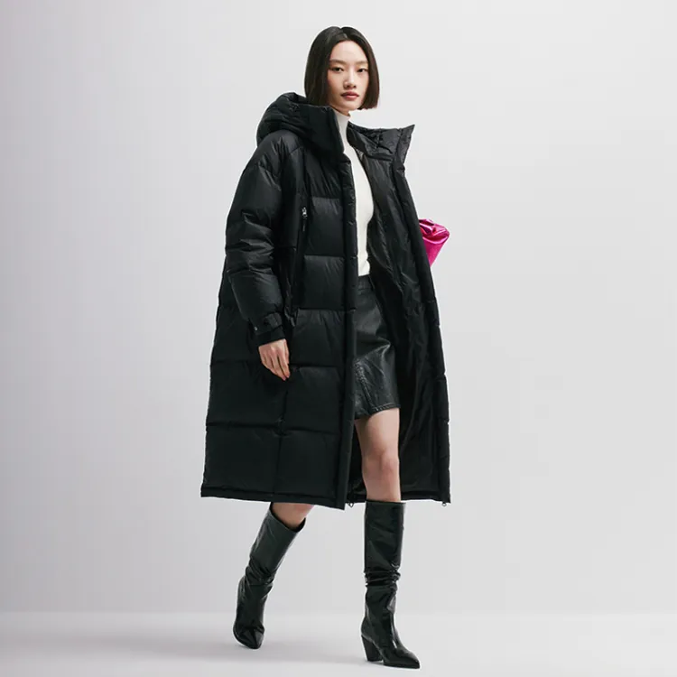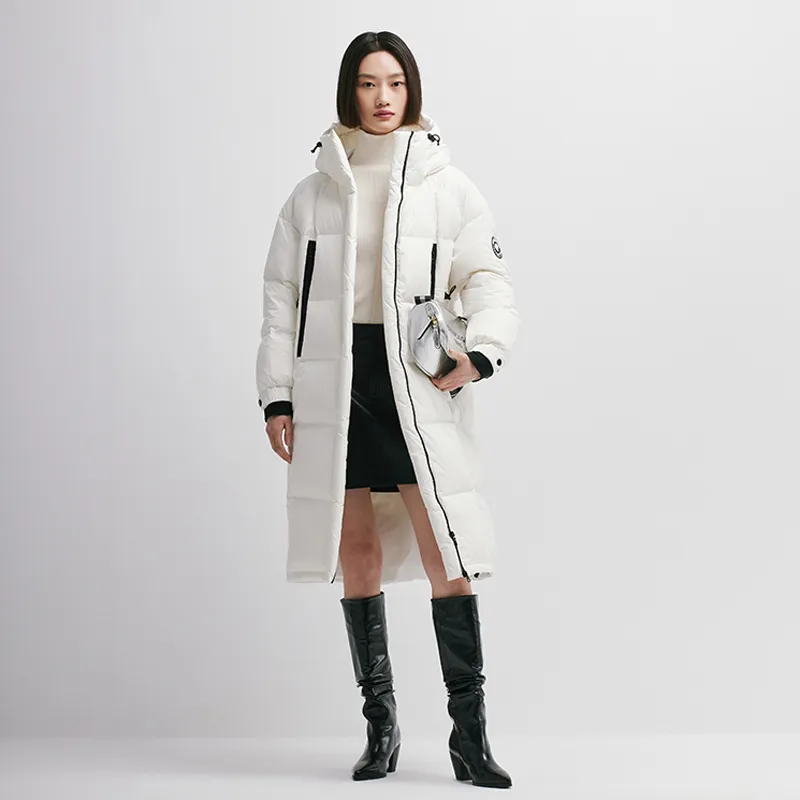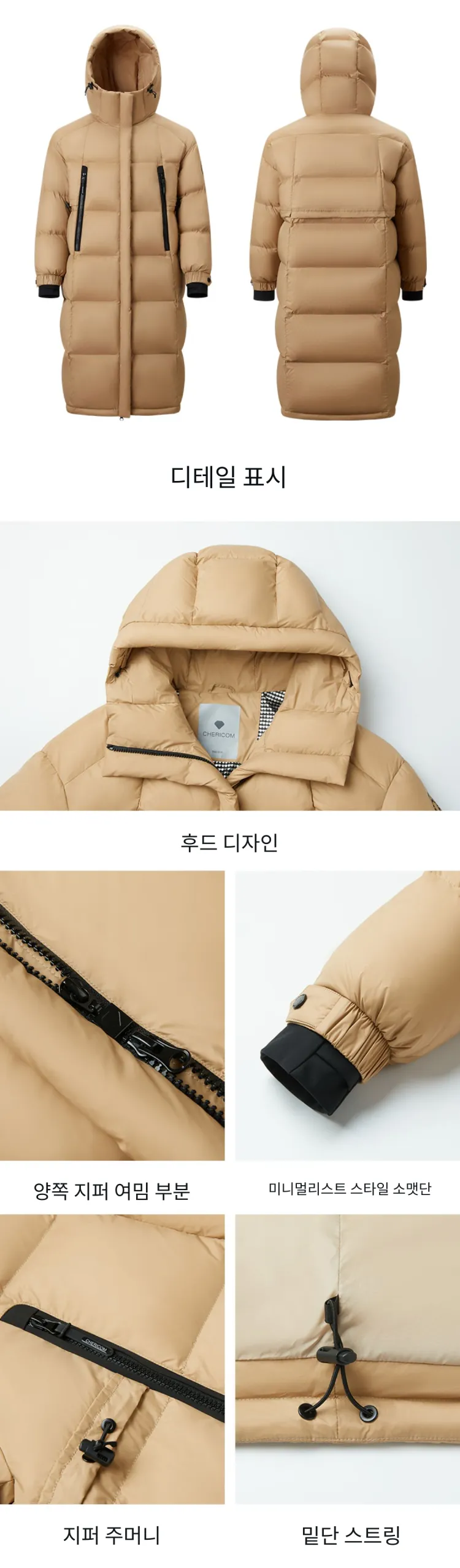 원단: 100% 폴리아미드, 안감: 100% 폴리에스터, 충전재 쉘: 100% 폴리에스터, 충전재: 90% 덕다운