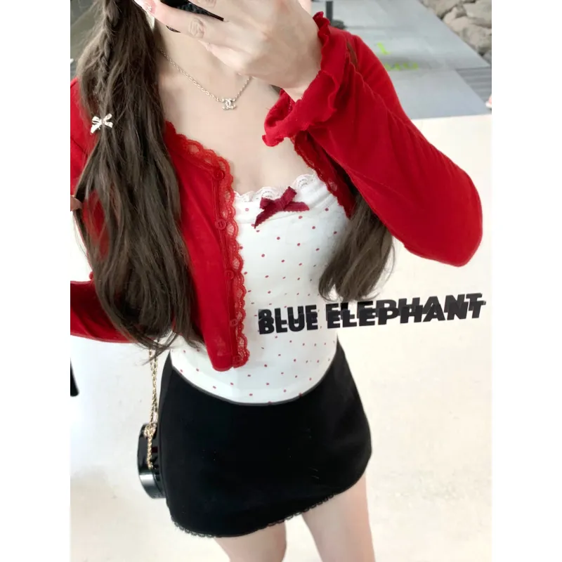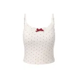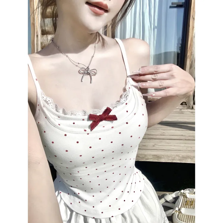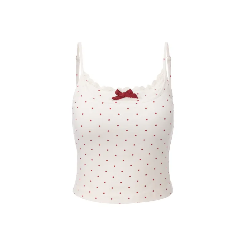 CHIWAWAMEME 밀크 화이트 대비 레드 도트 무늬 캐미솔 여성 끈 나시