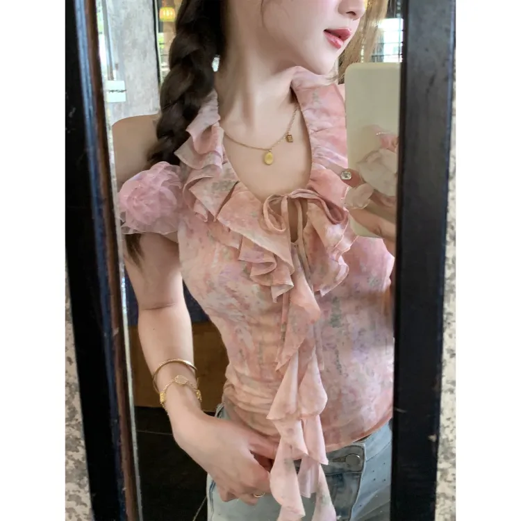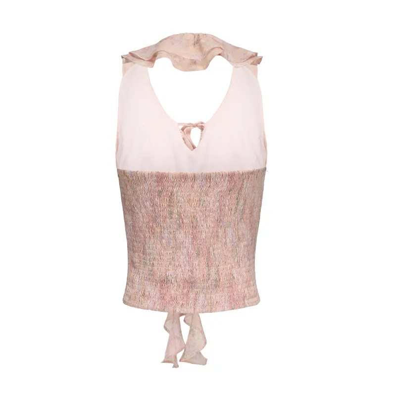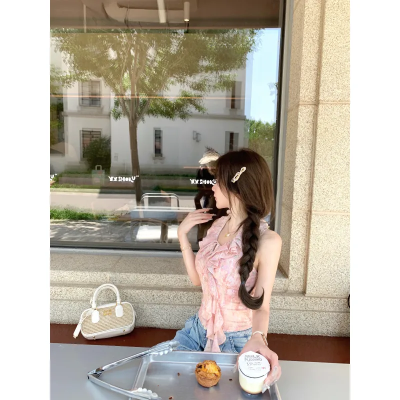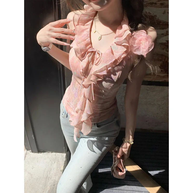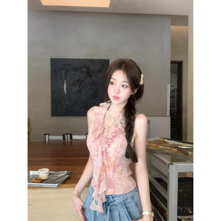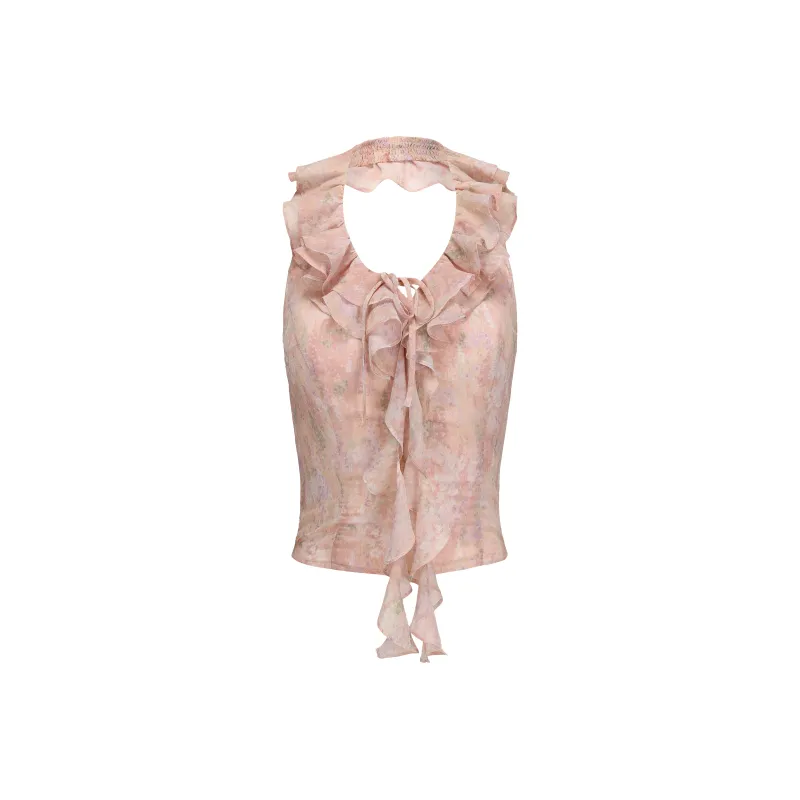 CHIWAWAMEME 핑크 플로럴 여성 끈 나시 - POIZON
