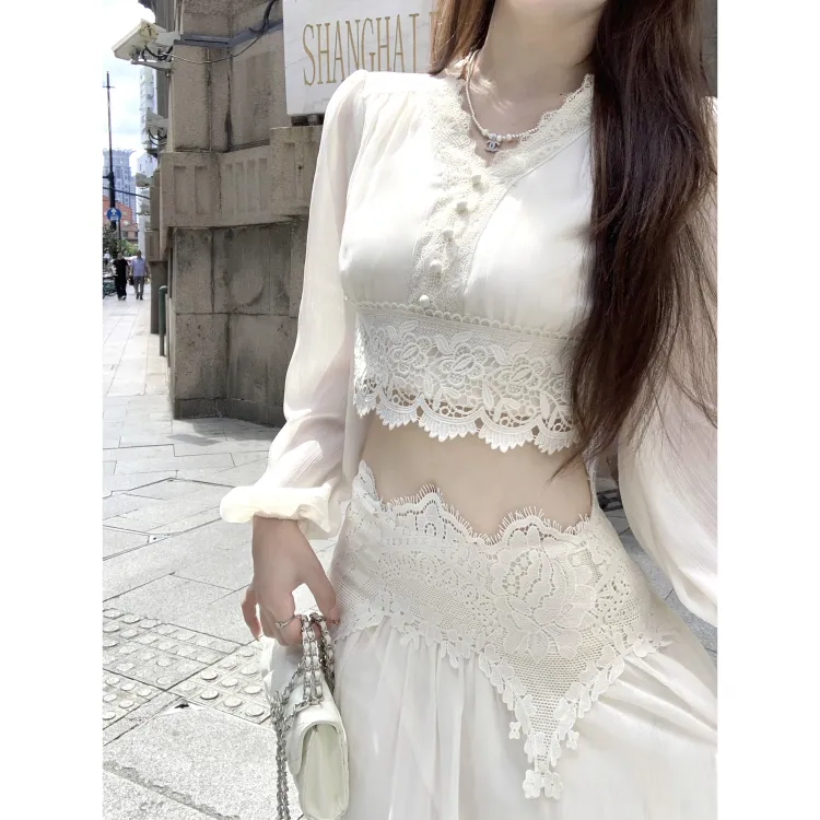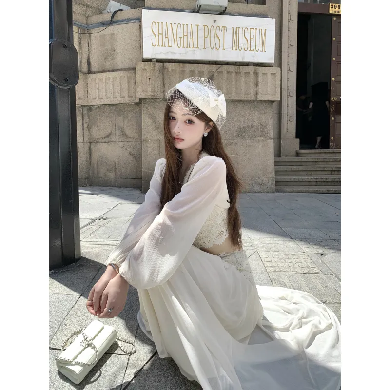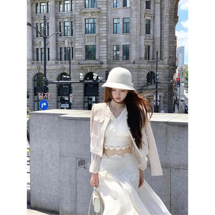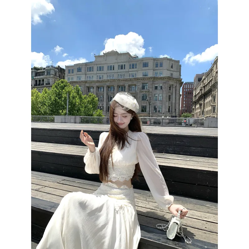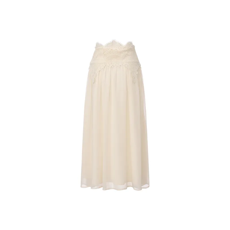 CHIWAWAMEME 베이지 애프리콧 롱 기장 스커트 여성 캐주얼 롱 스커트 - POIZON