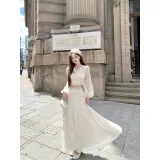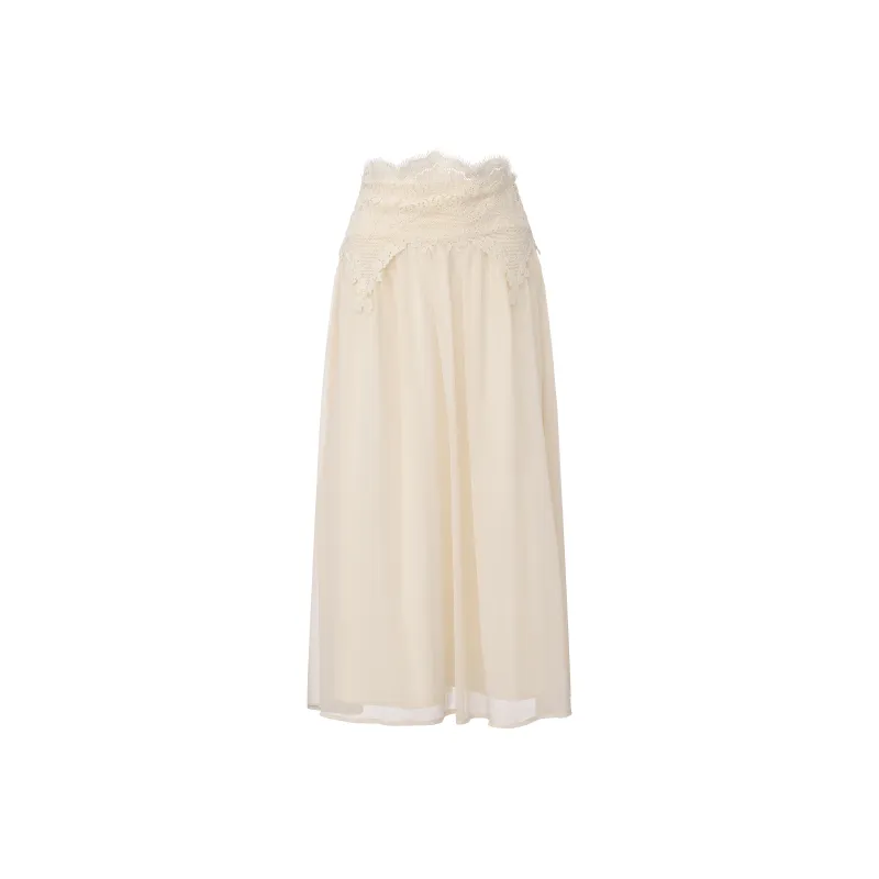 CHIWAWAMEME 베이지 애프리콧 롱 기장 스커트 여성 캐주얼 롱 스커트