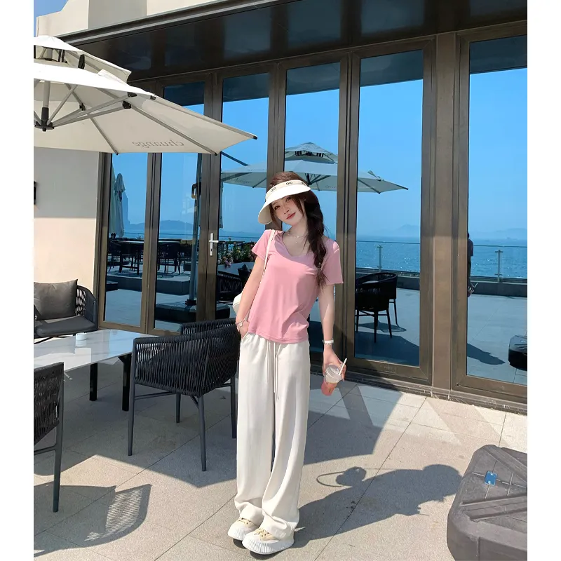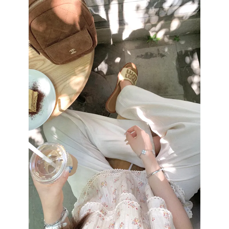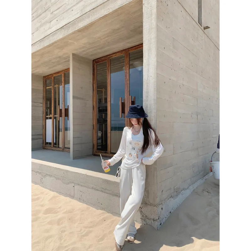 CHIWAWAMEME 베이지 애프리콧 여성 캐주얼 팬츠 - POIZON