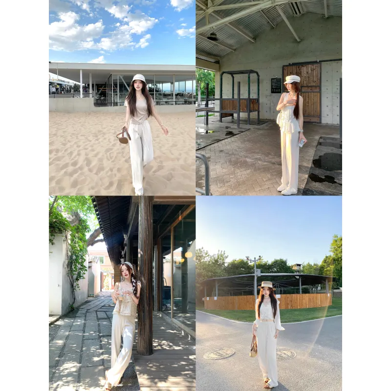 CHIWAWAMEME 베이지 애프리콧 여성 캐주얼 팬츠