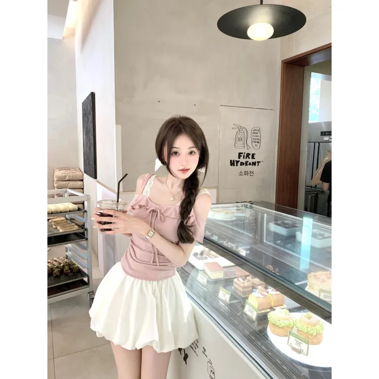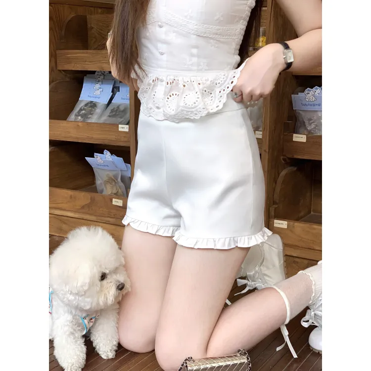 CHIWAWAMEME 아이보리 튤립 스커트 탈부착 가능 원스커트 양면 여성 캐주얼 숏 스커트 - POIZON