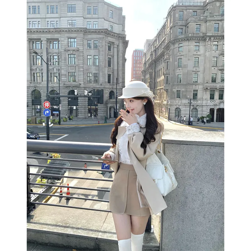 CHIWAWAMEME 헤이즐넛 밀크 커피 스몰 a 스커트 여성 캐주얼 숏 스커트 - POIZON