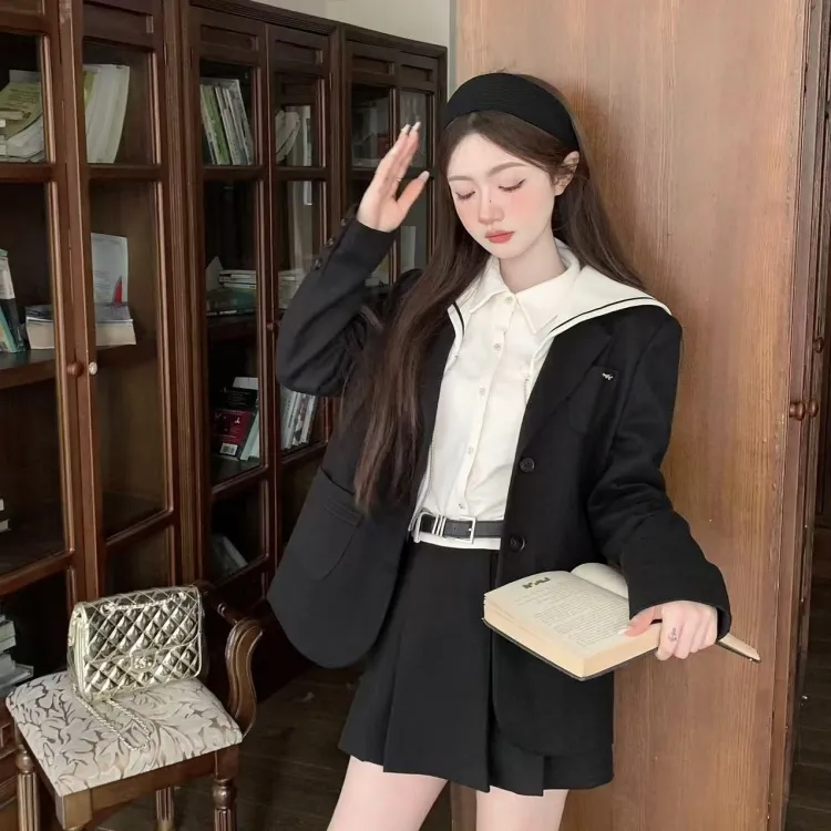 CHIWAWAMEME 캐주얼 미니스커트 여성 블랙 & 화이트 - POIZON