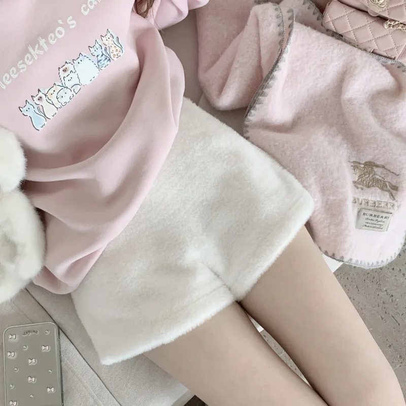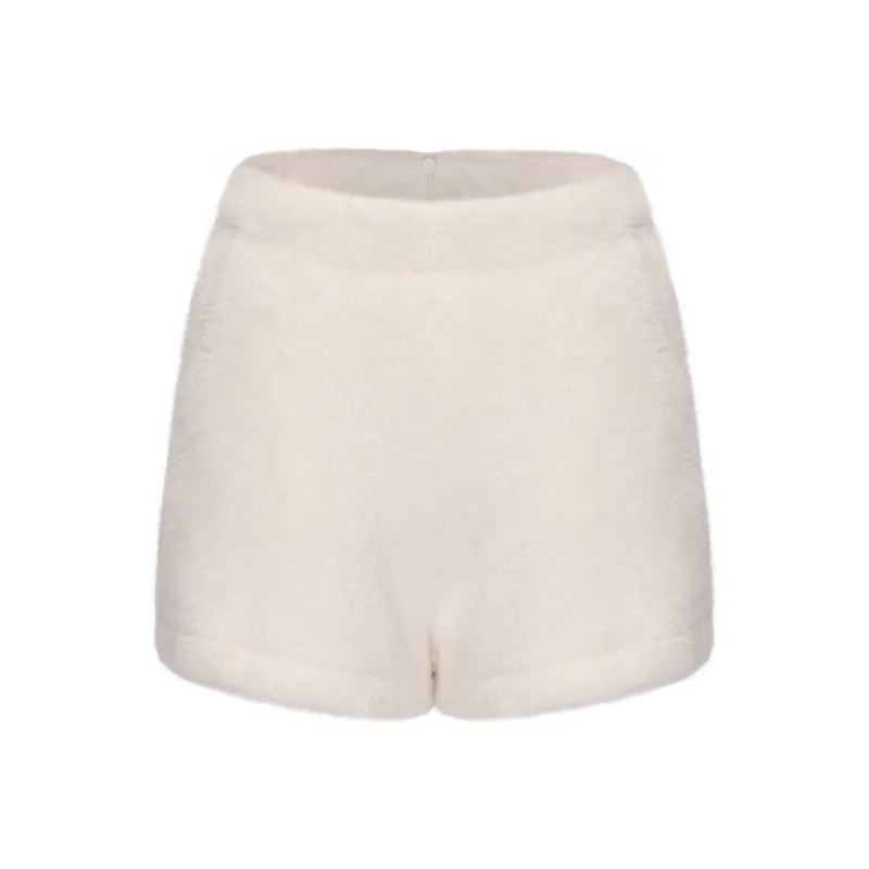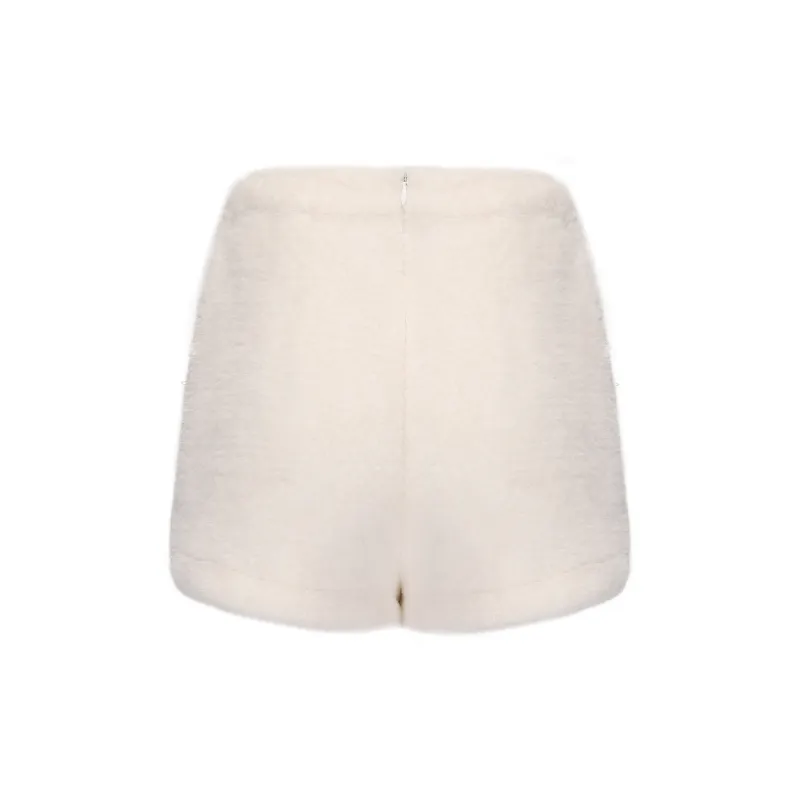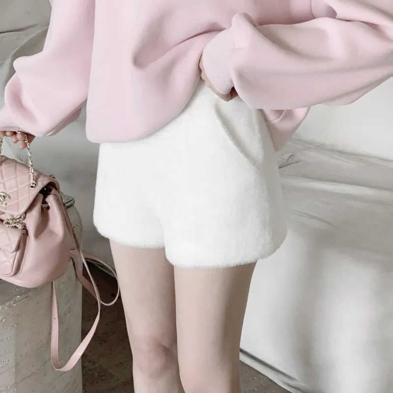 CHIWAWAMEME 크림 베이지 기모 안감 선택 가능 여성 캐주얼 반바지 - POIZON