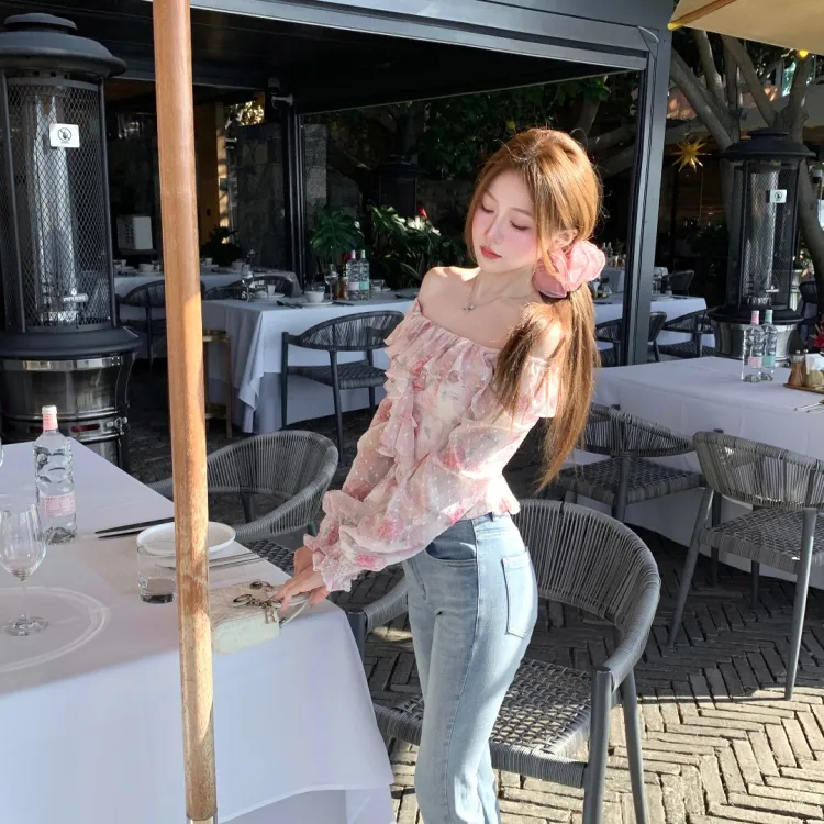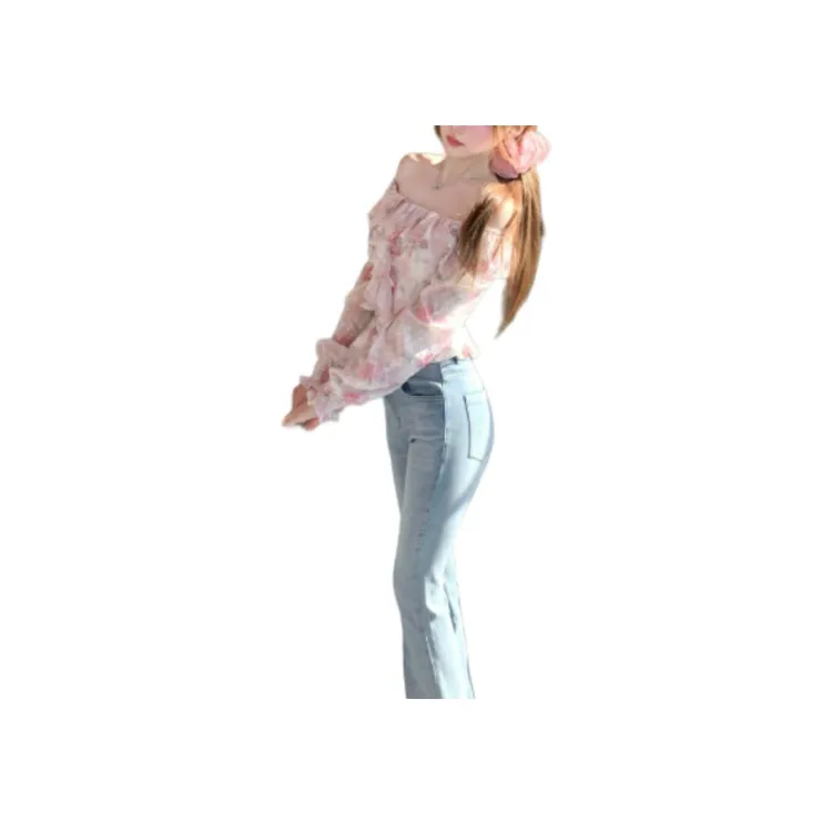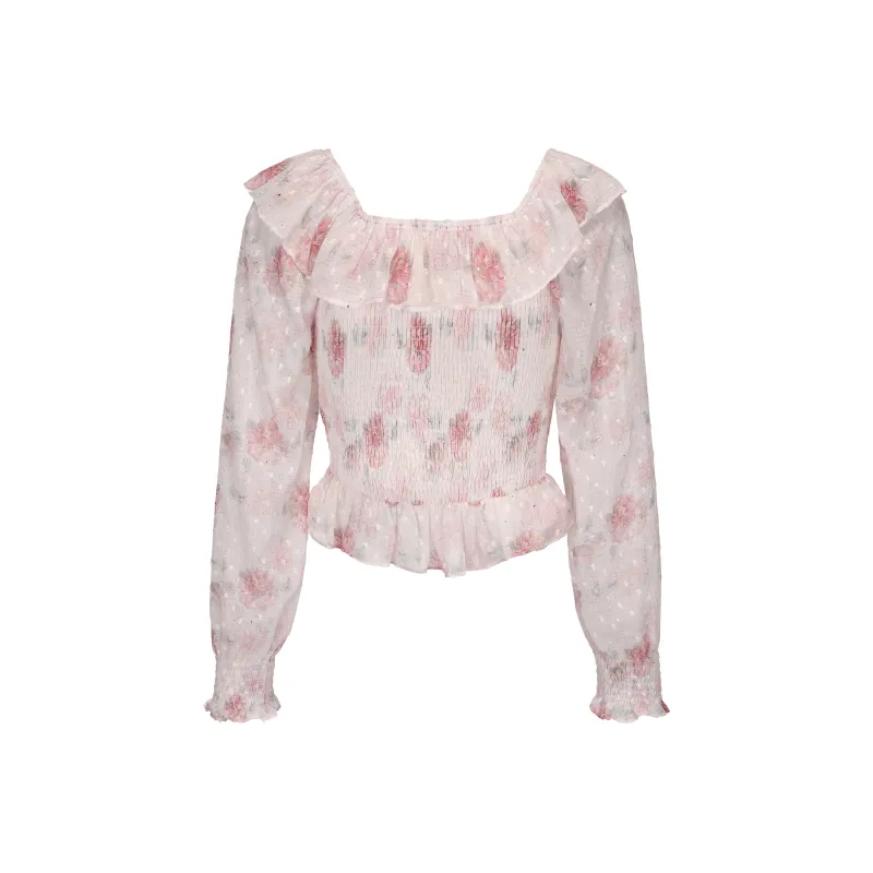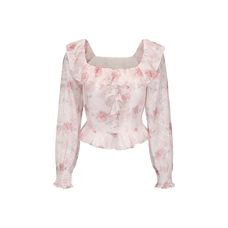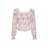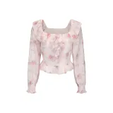 CHIWAWAMEME 쉬폰 블라우스 여성 체리 블라썸 핑크 꽃무늬 - POIZON