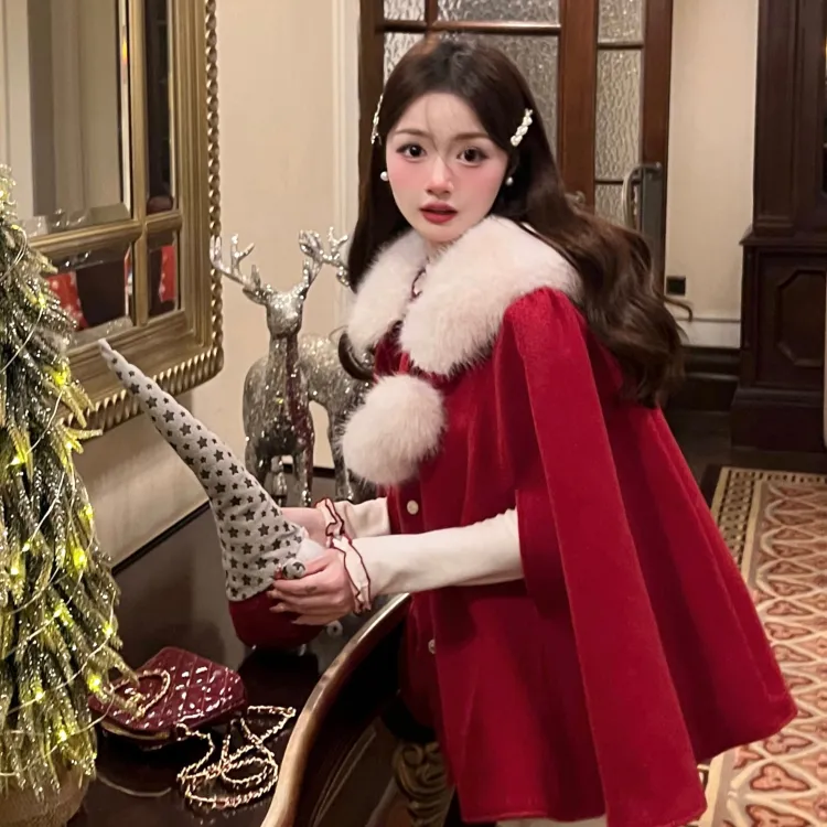 CHIWAWAMEME 레드 여성 망토 - POIZON