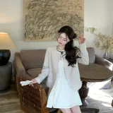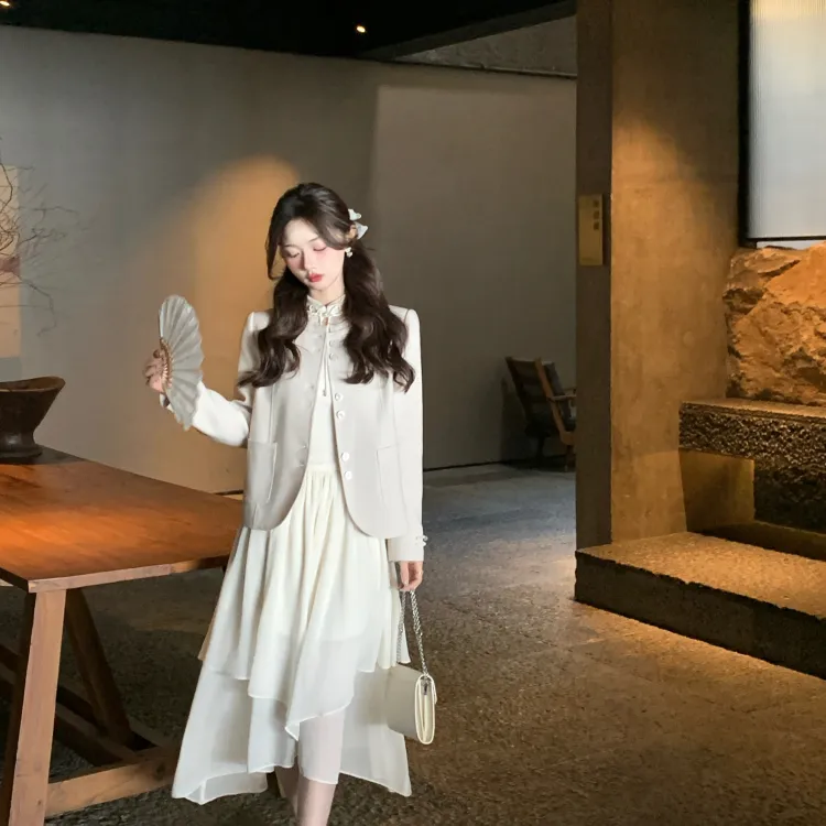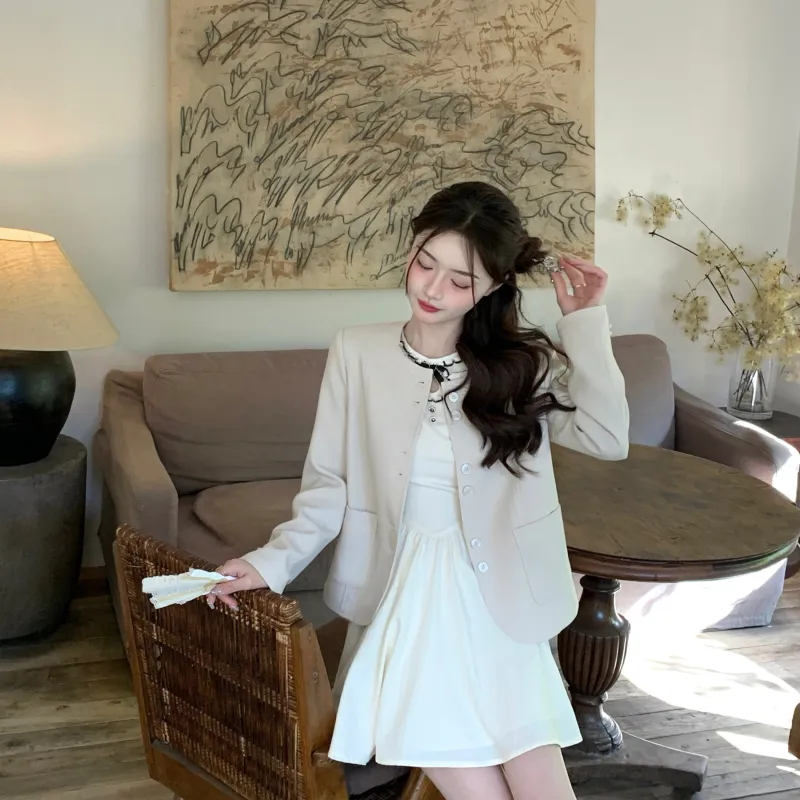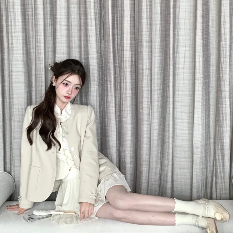 CHIWAWAMEME 크롭 코트 여성 그레이 & 애프리콧 - POIZON