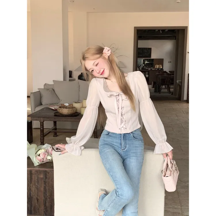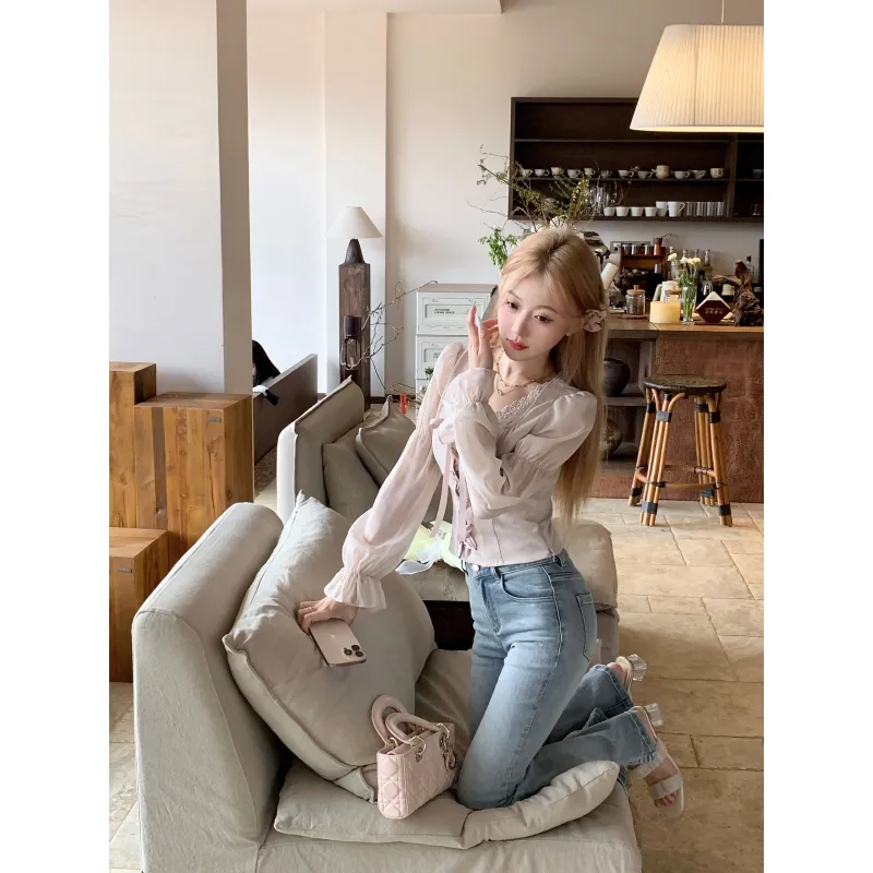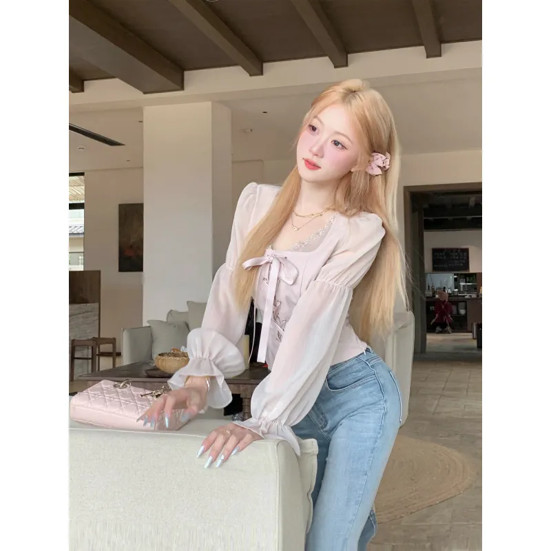 CHIWAWAMEME 샴페인 핑크 여성 셔츠 - POIZON
