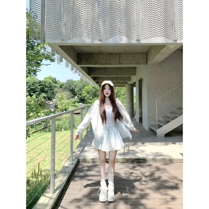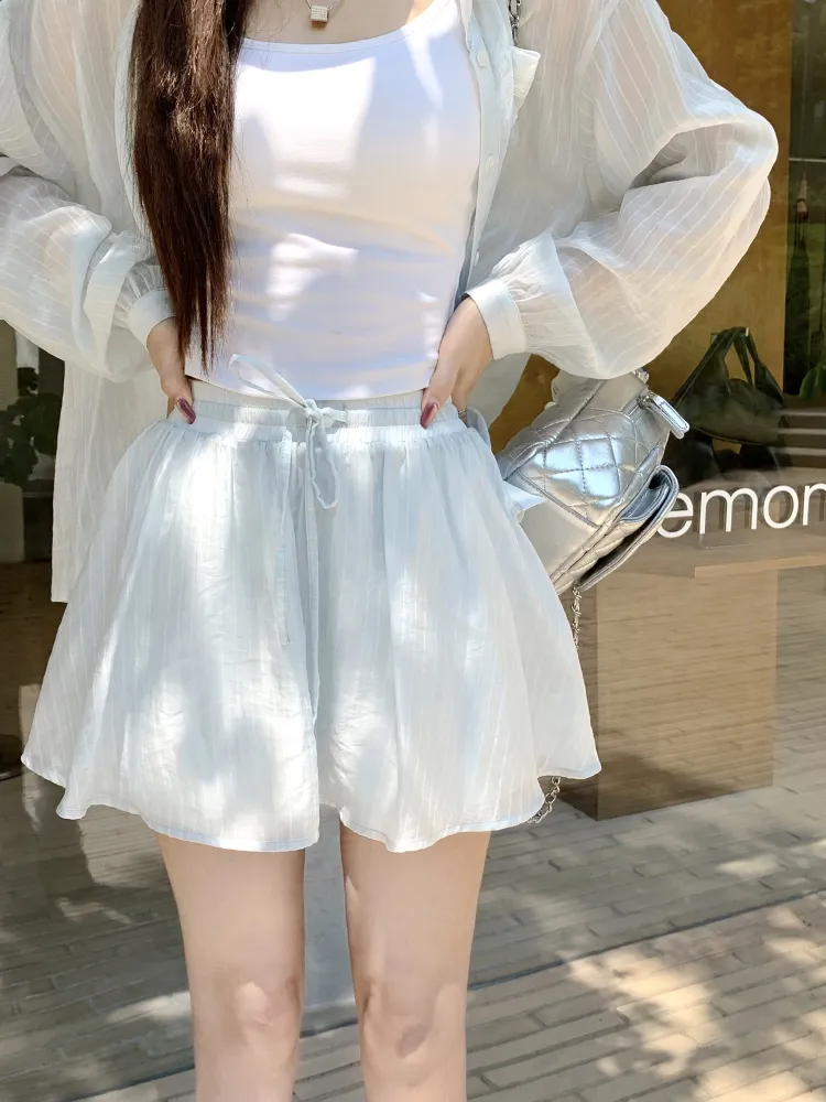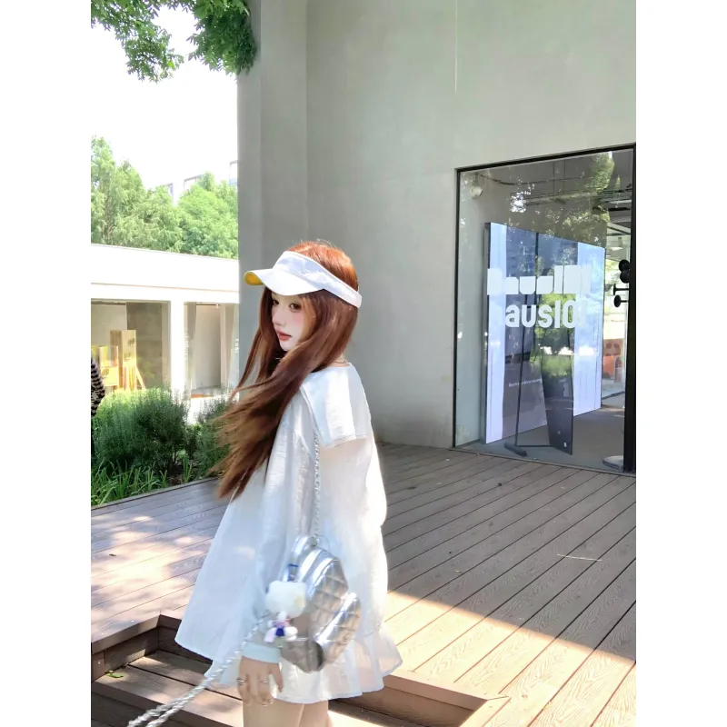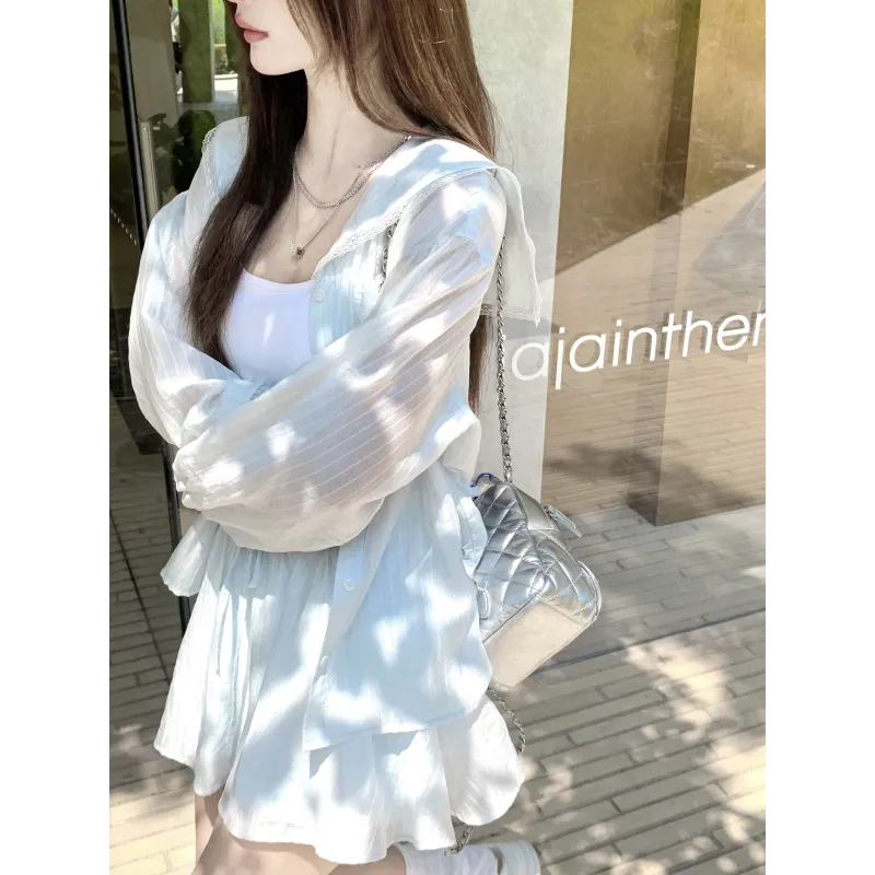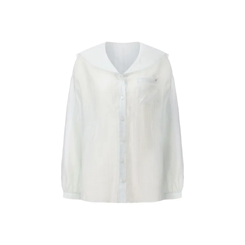 CHIWAWAMEME 씨 솔트 스트라이프 패턴 네이비 칼라 코트 여성 셔츠