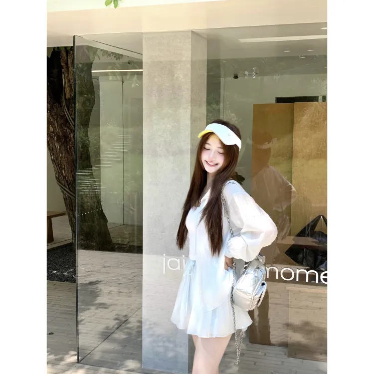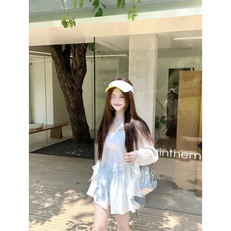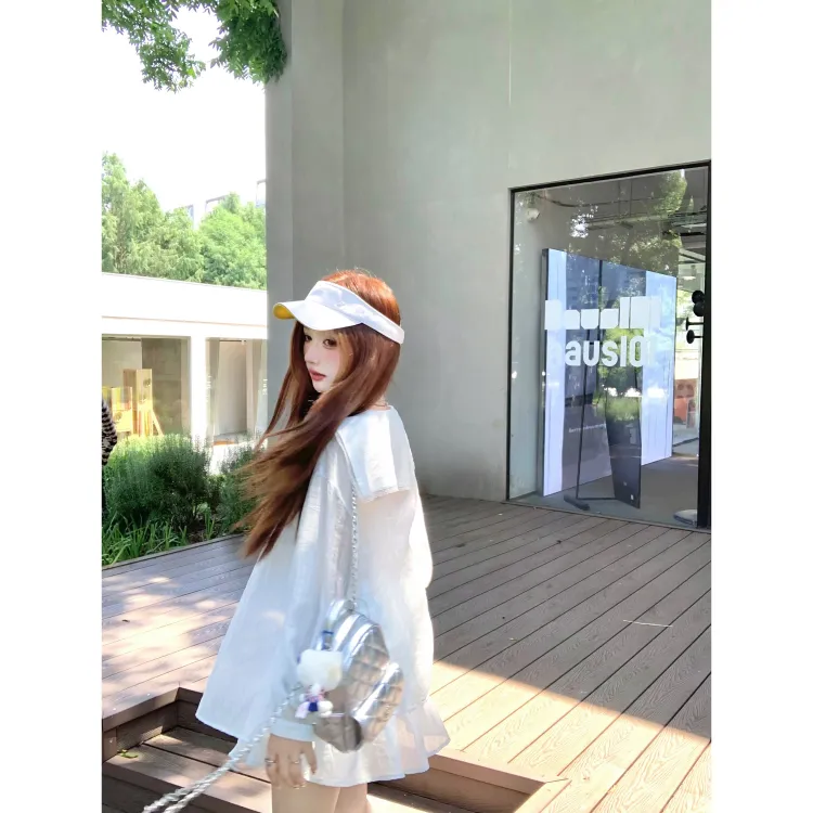 CHIWAWAMEME 씨 솔트 스트라이프 패턴 네이비 칼라 코트 여성 셔츠 - POIZON