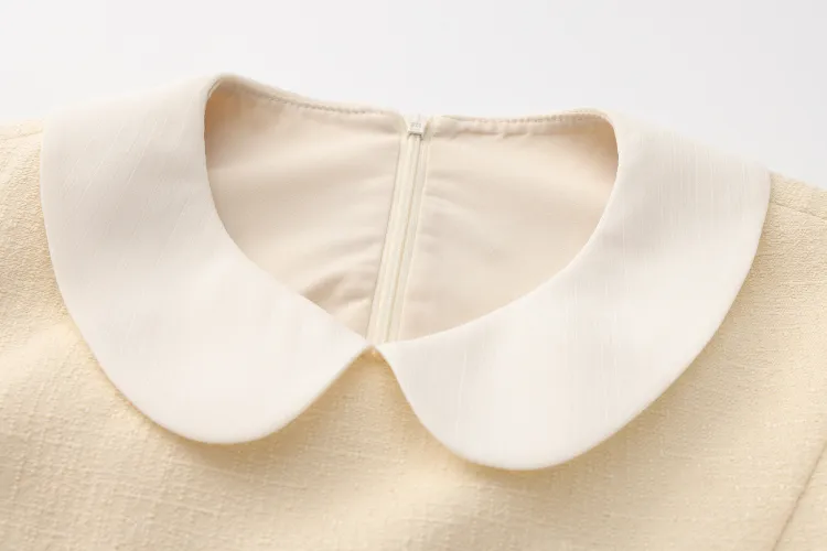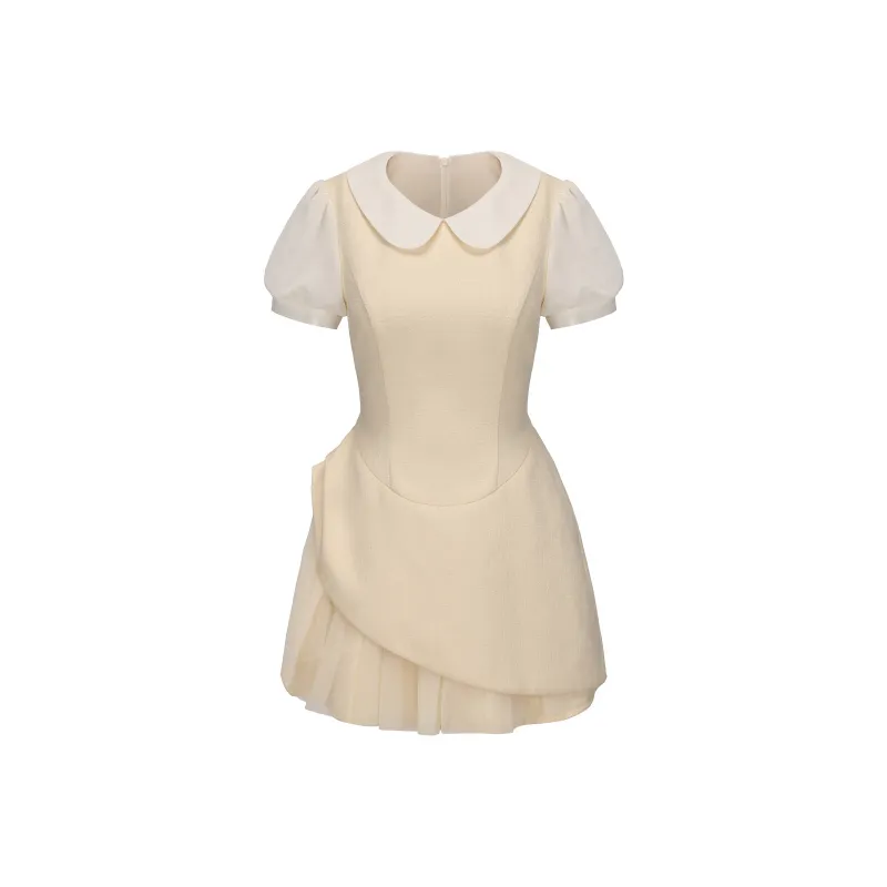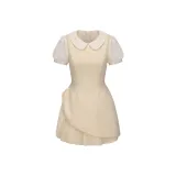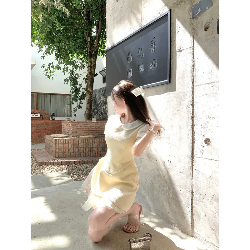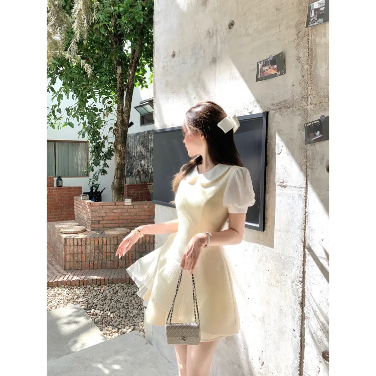 CHIWAWAMEME 크림 옐로우 & 화이트 여성 반팔 원피스 - POIZON