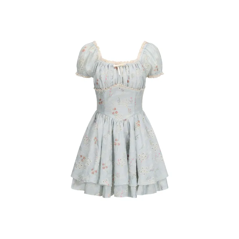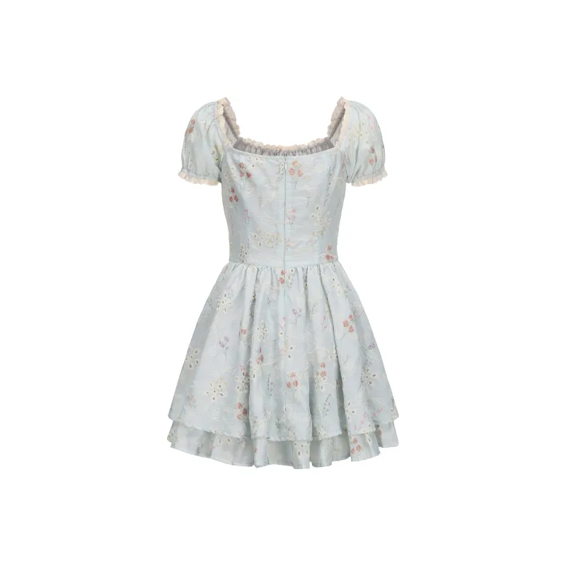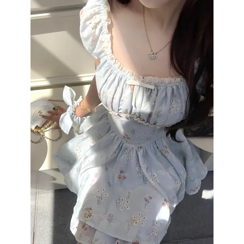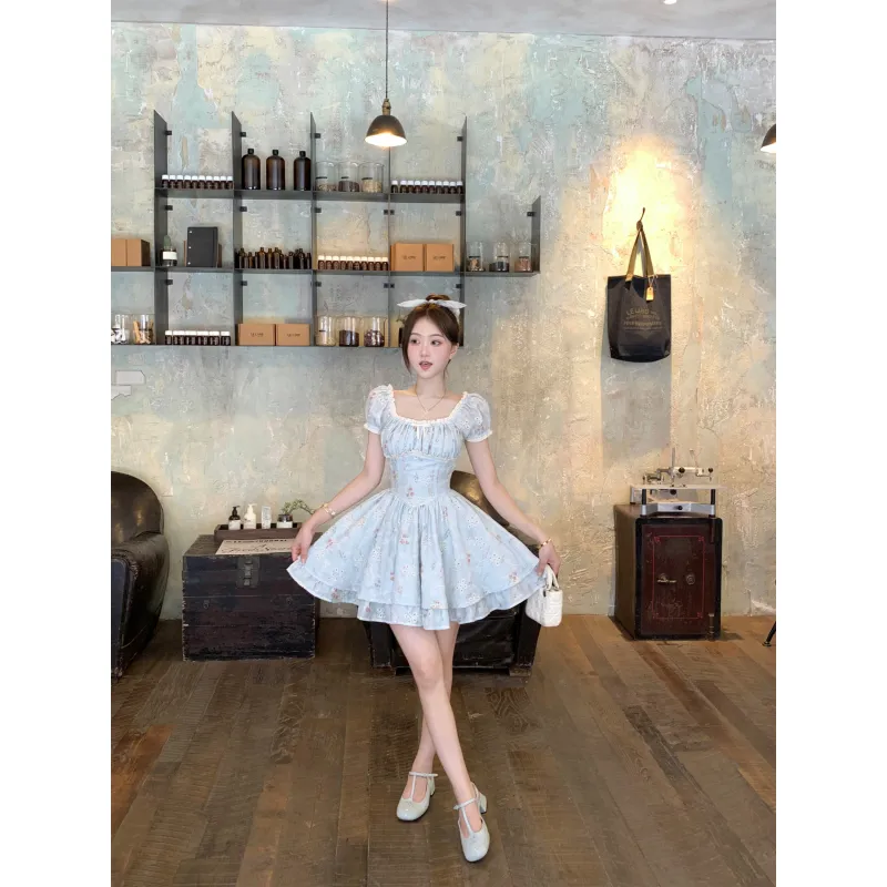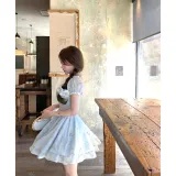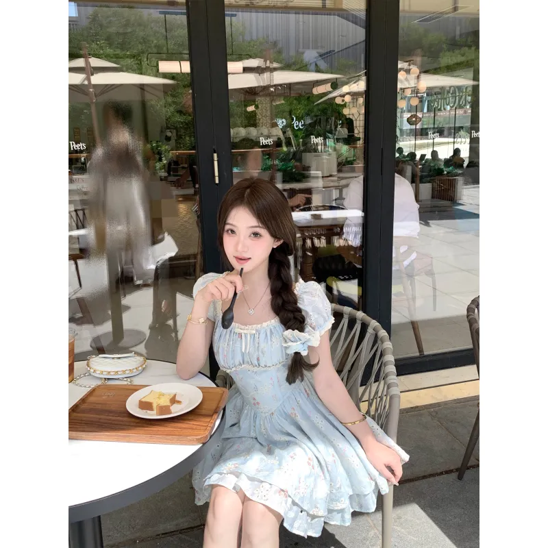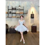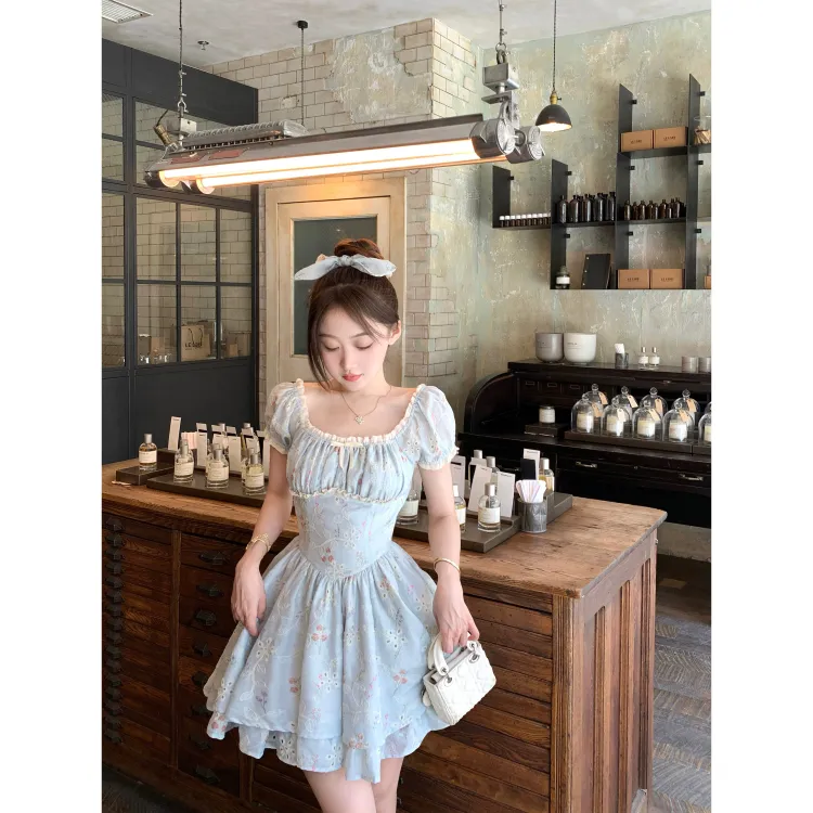 CHIWAWAMEME 민트 블루 드레스 여성 반팔 원피스 - POIZON