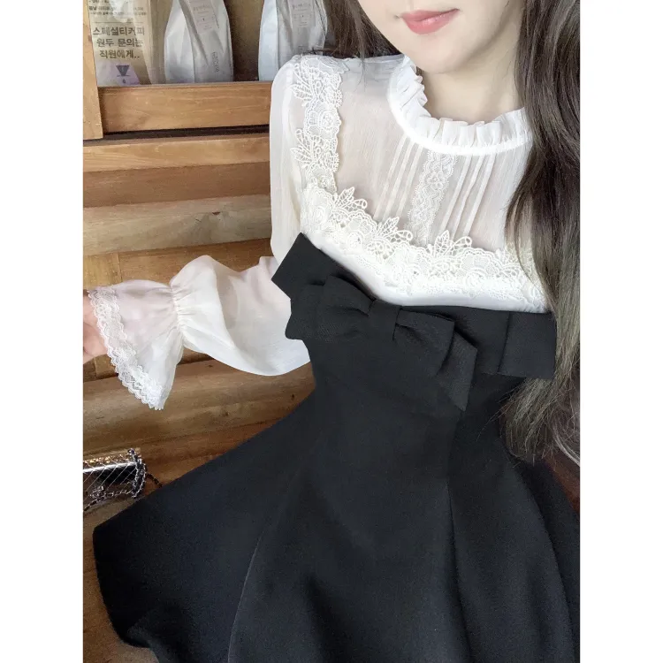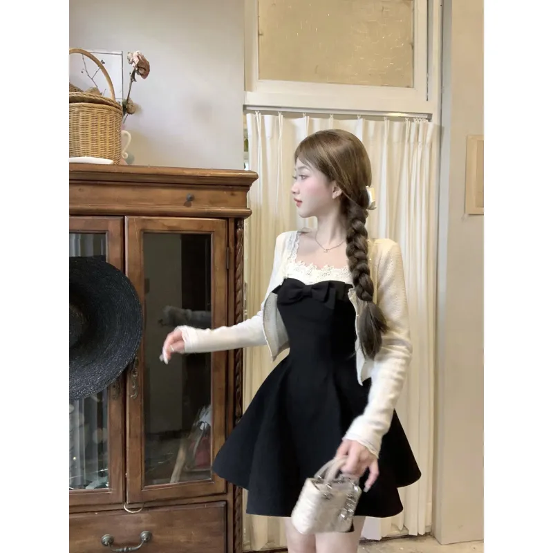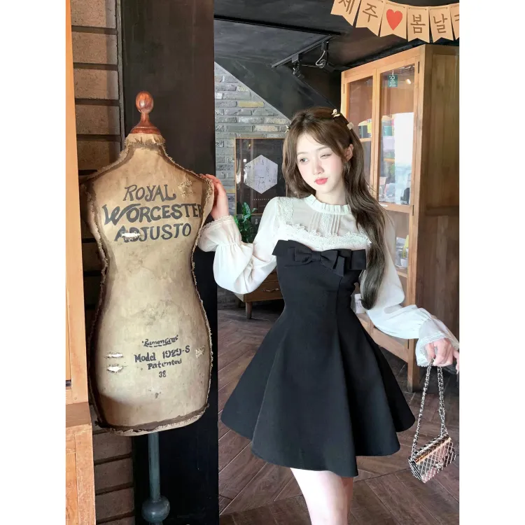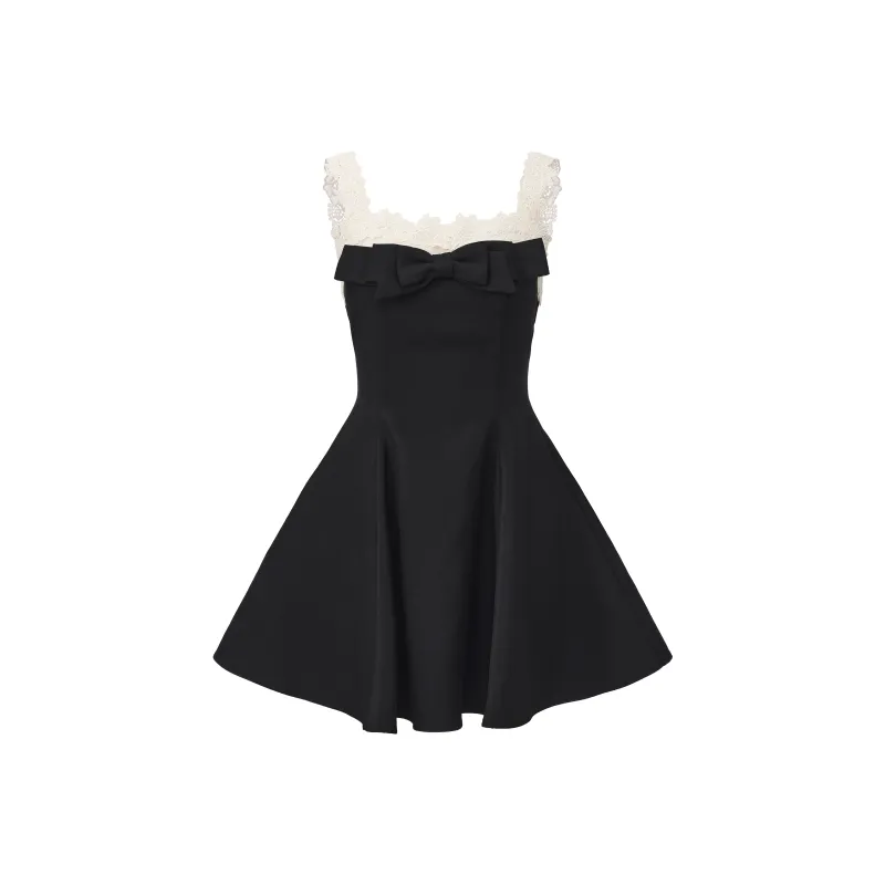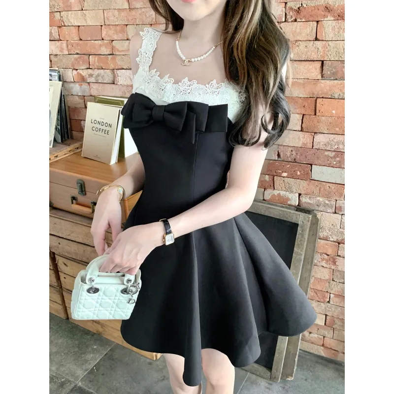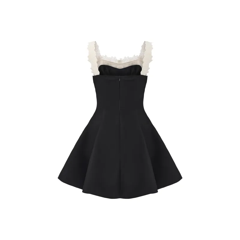 CHIWAWAMEME 워터 Soluble 레이스 민소매 미니 블랙 스커트 여성 민소매 원피스 - POIZON