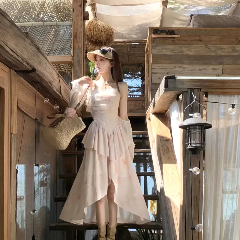 CHIWAWAMEME 슬립 드레스 여성 블렌디드 유화 롱 기장 스커트 - POIZON