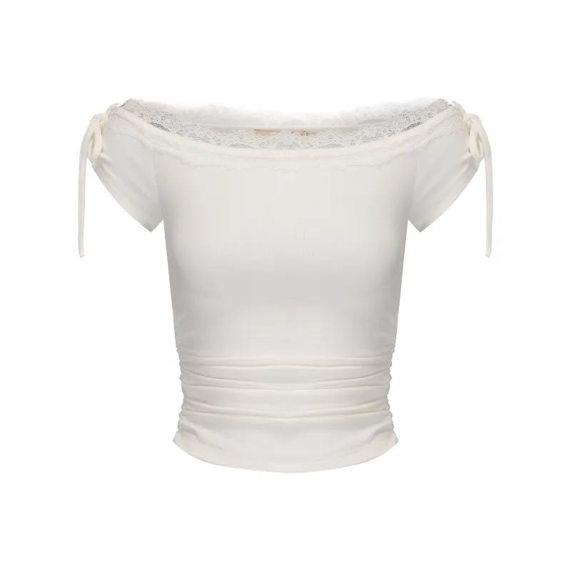 CHIWAWAMEME 크림 베이지 화이트 여성 티셔츠