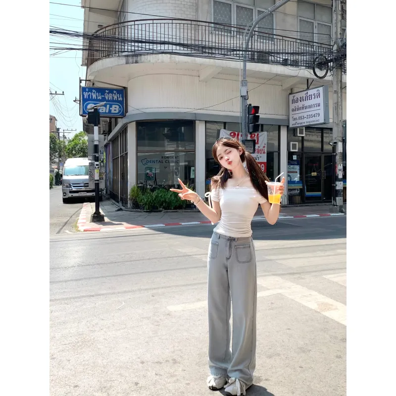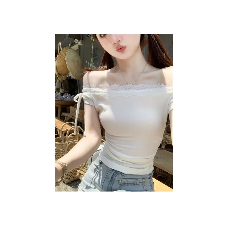 CHIWAWAMEME 크림 베이지 화이트 여성 티셔츠 - POIZON