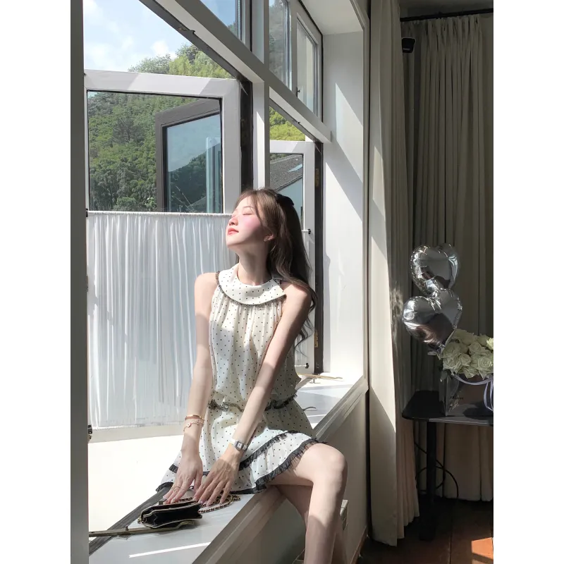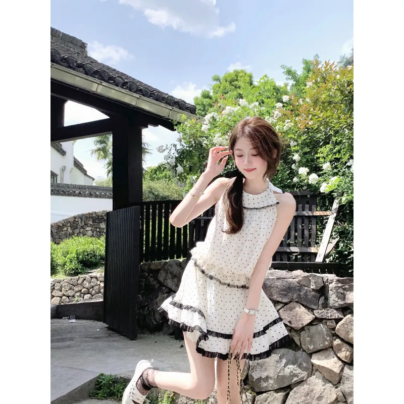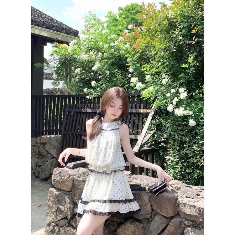 색상:프렌치 베이지 & 블랙 홀터 민소매 상의
