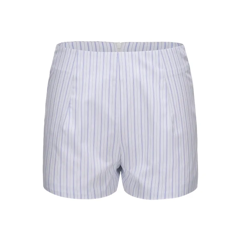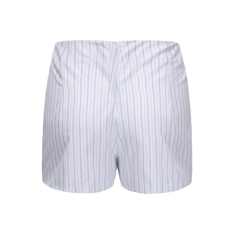 블루 & 화이트 스트라이프 패턴 하이웨이스트 반바지
