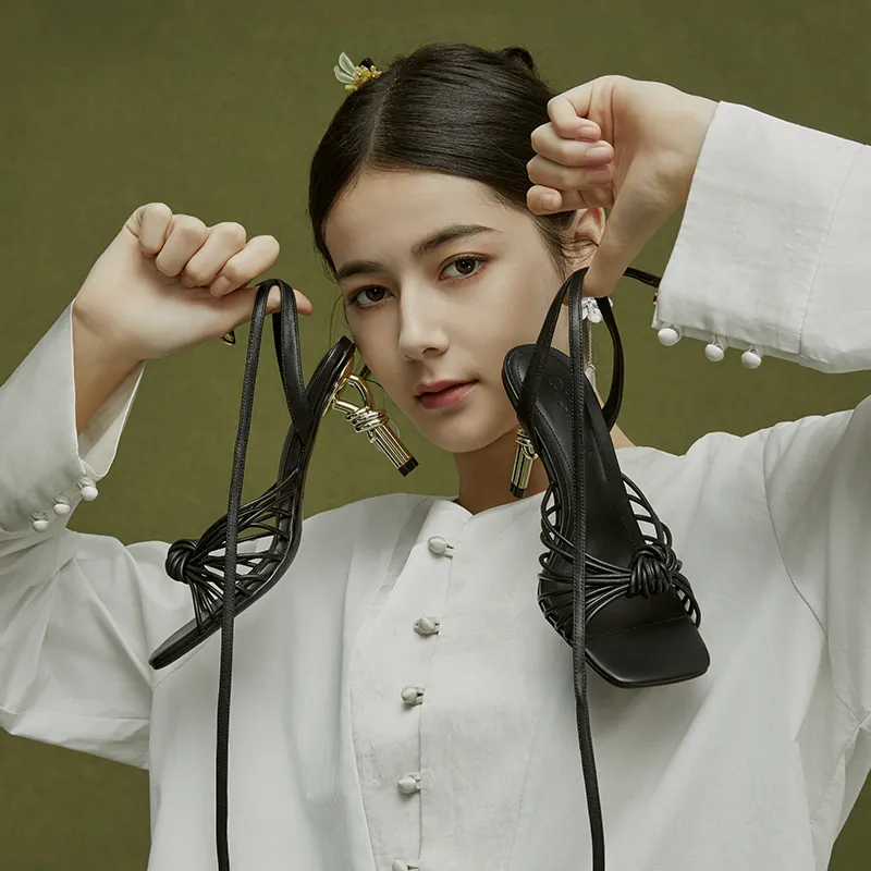 CICIFOR 노트 샌들 일자 스트랩 샌들 8CM 여성 블랙 - POIZON