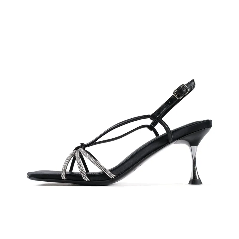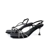 CICIFOR 모로칸 다이아몬드 패턴 Sea 일자 스트랩 샌들 7CM 여성 블랙