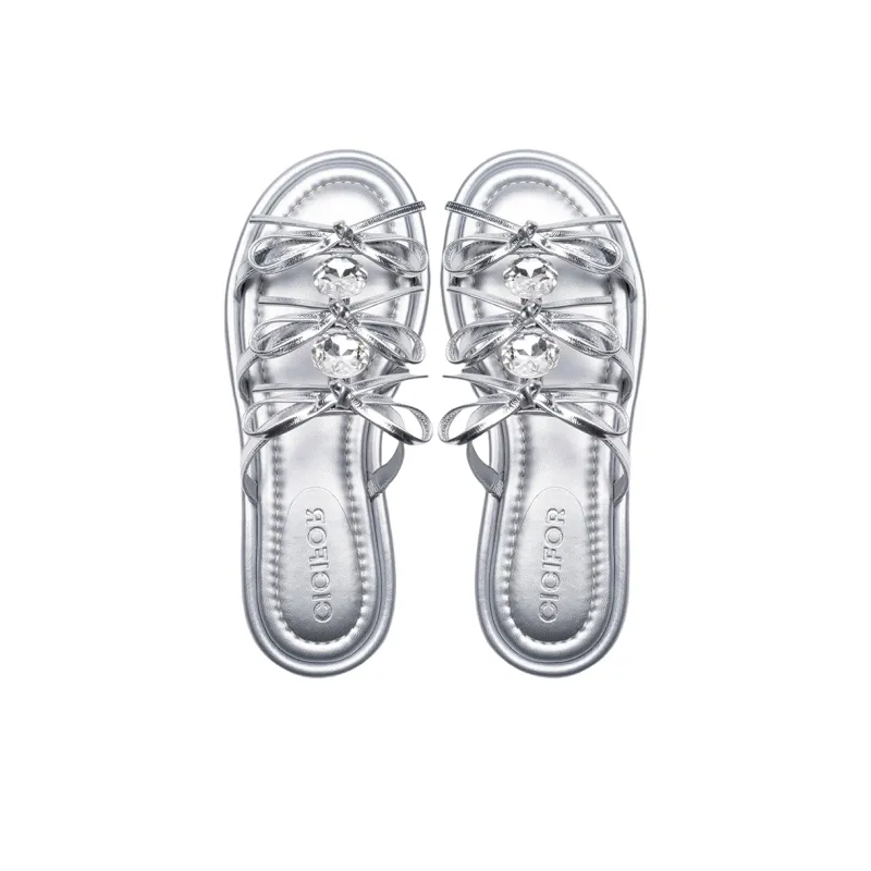 CICIFOR 고무 밑창 라인 스톤 미끄럼방지 슬라이드 슬리퍼 여성 실버