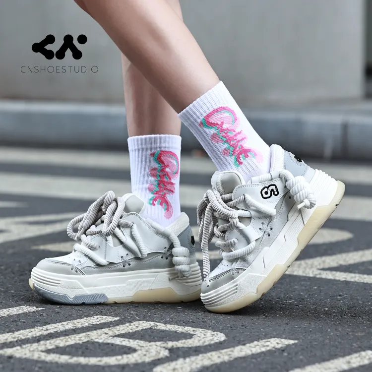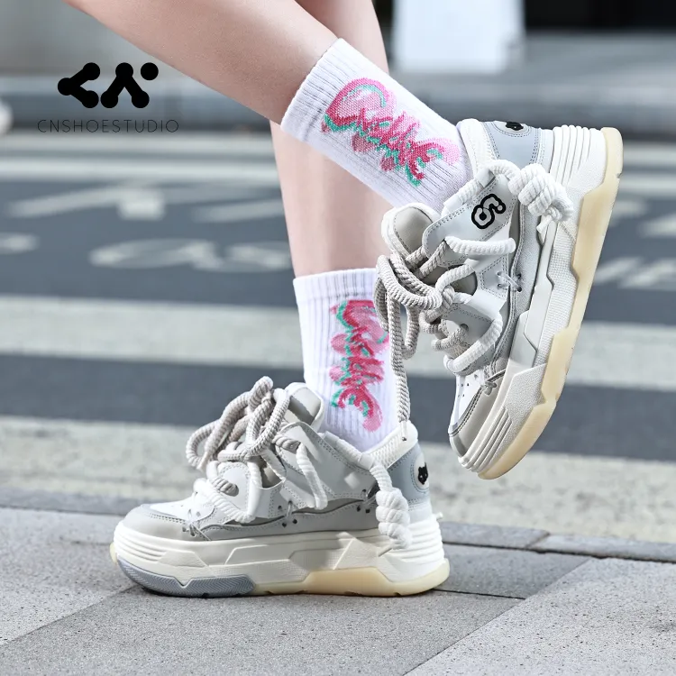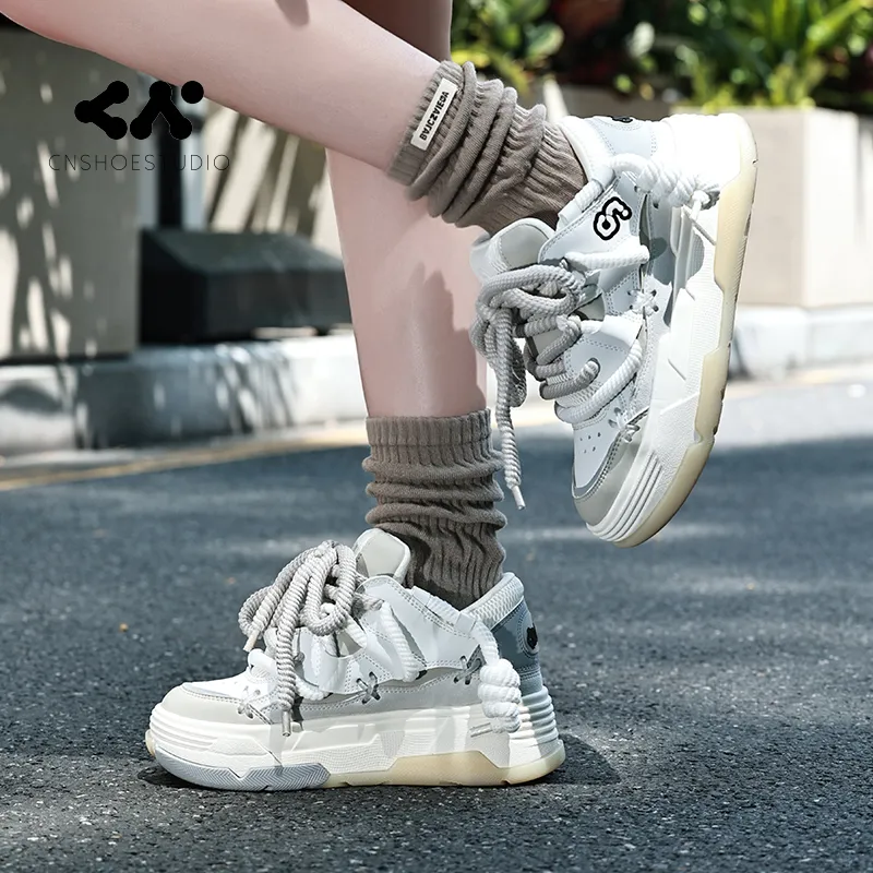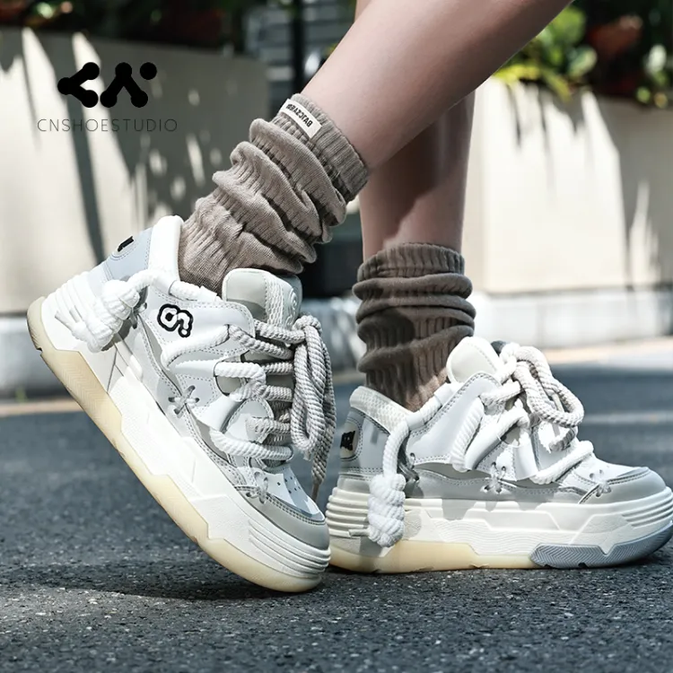 CN 스케이트 그레이 워리어 착화감, 미끄럼 방지, 내마모성, 가벼움, 통기성 좋음, 키높이 로우탑 스케이트보드 신발 남녀공용 화이트 그레이