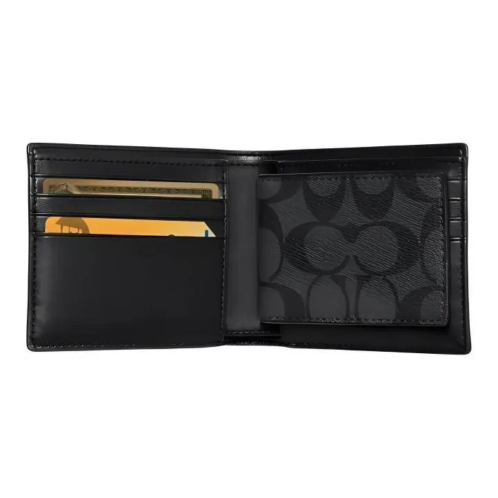코치 3 in 1 지갑 코팅 캔버스 지갑 미니 남성 블랙 그레이 - POIZON