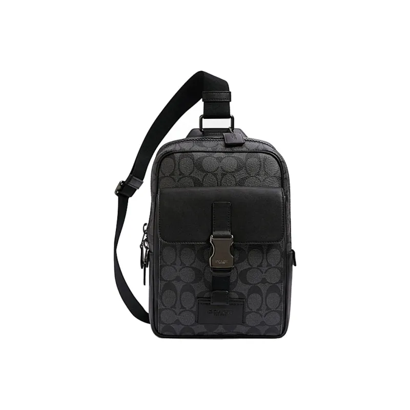 코치 캔버스+가죽 숄더백 크로스바디백 백팩, 슬링 가방 미니 남성 차콜 블랙 - POIZON