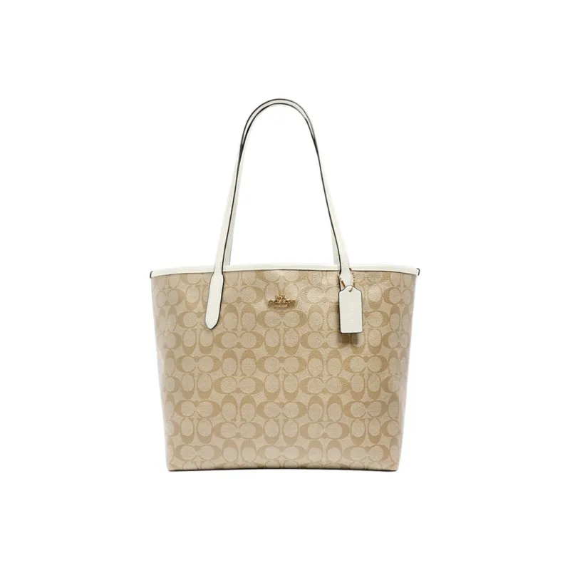 코치 시그니처 캔버스 시티 토트백 이미테이션 골드 라이트 카키 초크 - POIZON