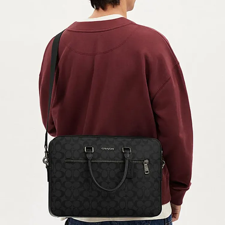 코치 이탄 인조 가죽 휴대용 숄더백 크로스바디백 브리프케이스 L 남성 블랙 - POIZON