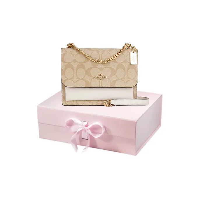 코치 클라레 소가죽, 인조 가죽 크로스백 미니 여성 라이트 카키 & 초크 화이트