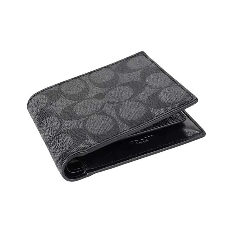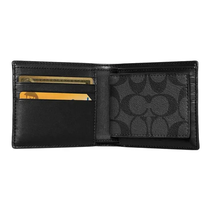 코치 3 IN 1 지갑 시그니처 코팅 캔버스 3 In 1 지갑 남성 블랙