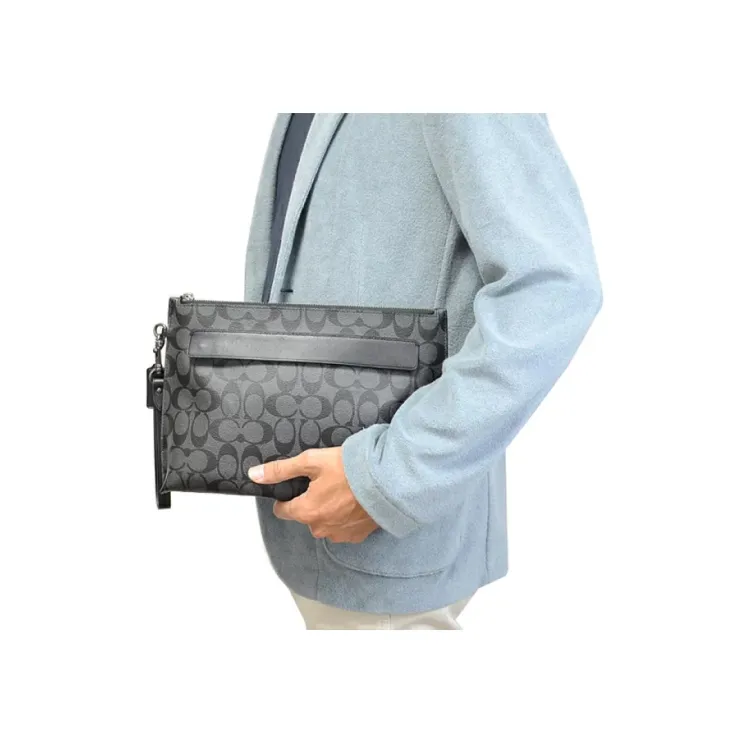 코치 파우치 코팅 캔버스 가죽 포함 클러치백 L 남성 블랙