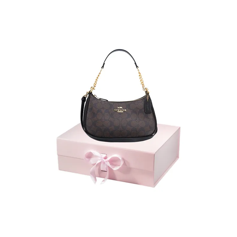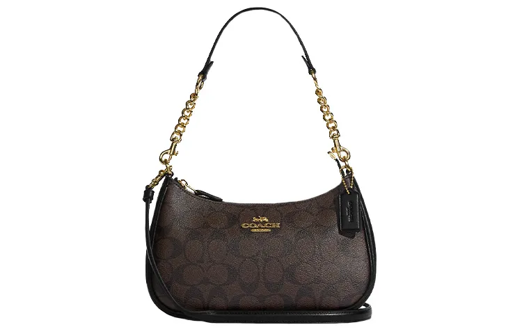 코치 시그니쳐 캔버스 테리 숄더백 브라운 블랙