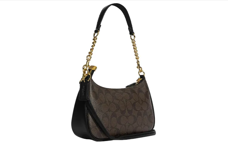 코치 시그니쳐 캔버스 테리 숄더백 브라운 블랙 - POIZON