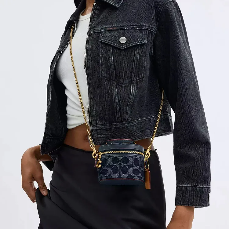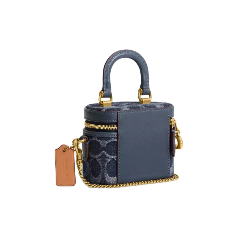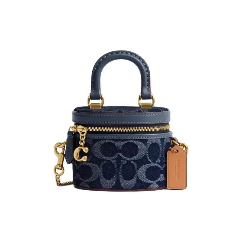 코치 트레일 데님 및 리파인드 송아지 가죽 가방 미니 여성 브라스 & 블루 - POIZON