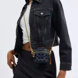 코치 트레일 데님 및 리파인드 송아지 가죽 가방 미니 여성 브라스 & 블루