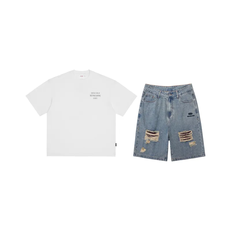 의류 세트 (화이트 상의 + 빈티지 데님 블루 바지)