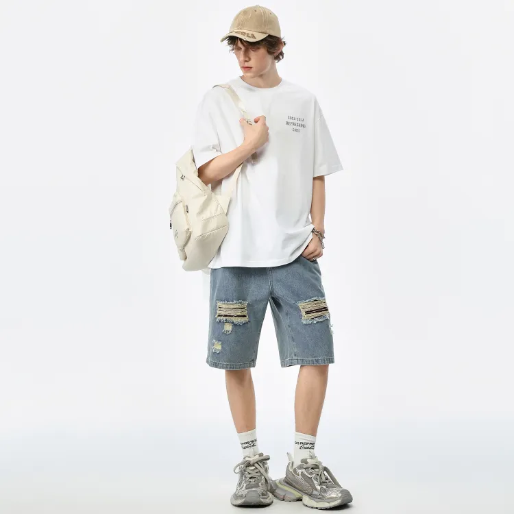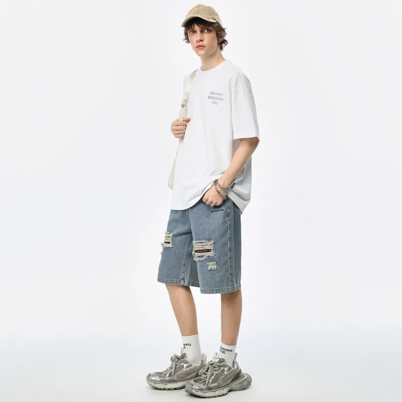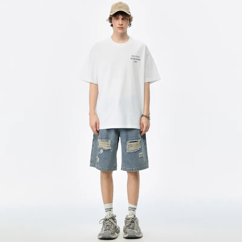 세트:의류 세트 (화이트 상의 + 빈티지 데님 블루 바지)
