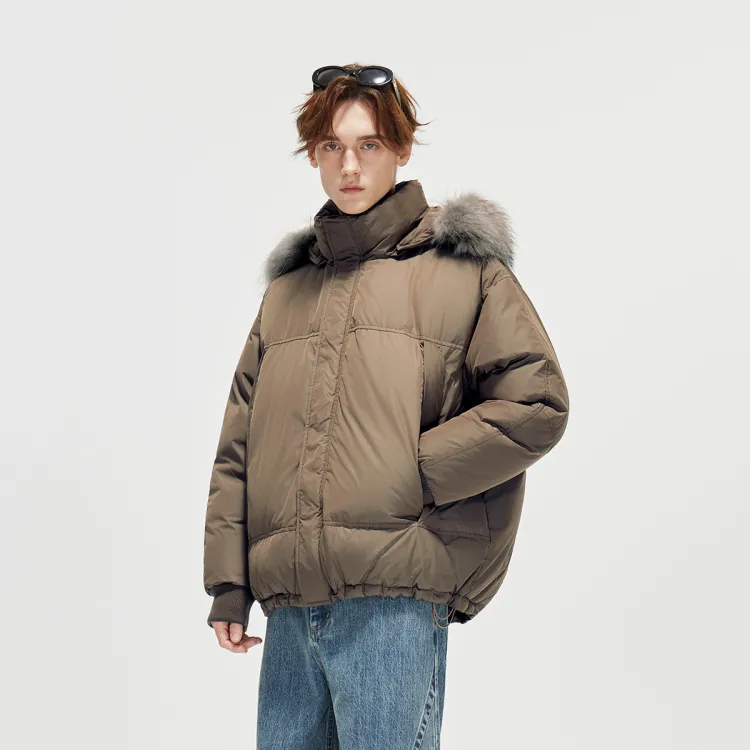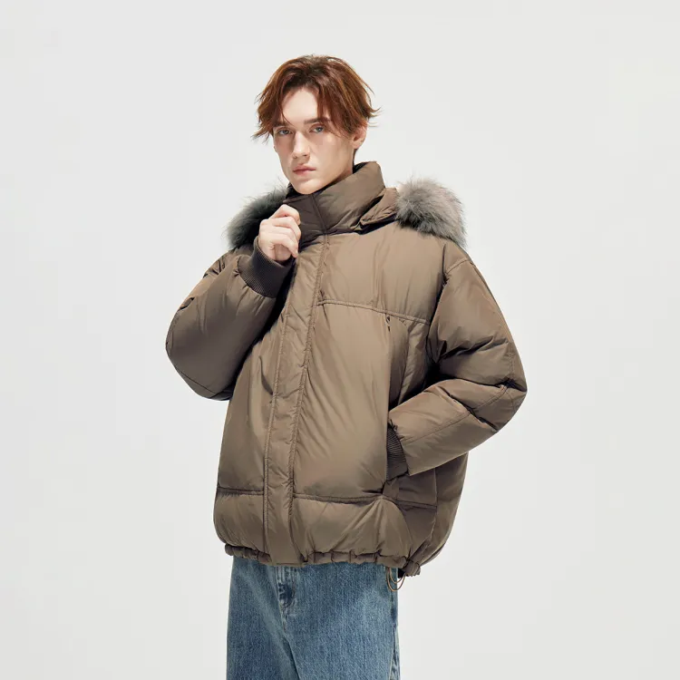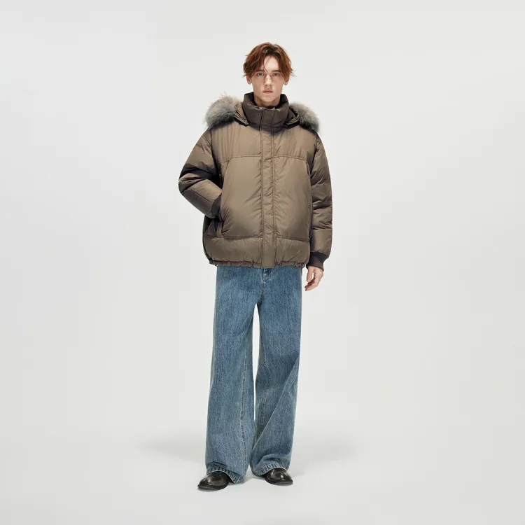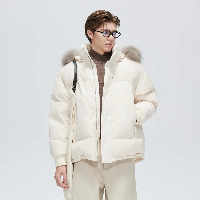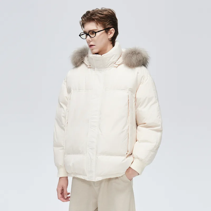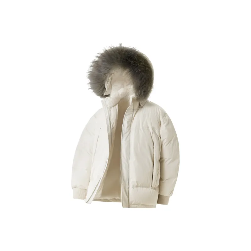 원단: 100% 폴리에스터; 안감: 100% 폴리에스터; 퍼 카라: 너구리 모피; 충전재 중량: S: 193g, M: 203g, L: 213g, XL: 223g