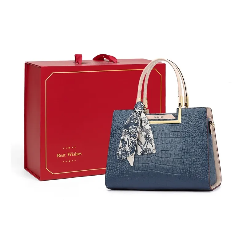COMELY 소가죽 Mom 가방, <브랜드_1>e 어깨 크로스백, 핸드백 L 여성 블루/애프리콧 - POIZON