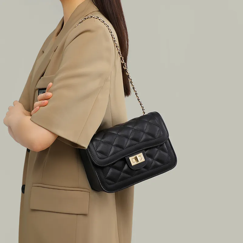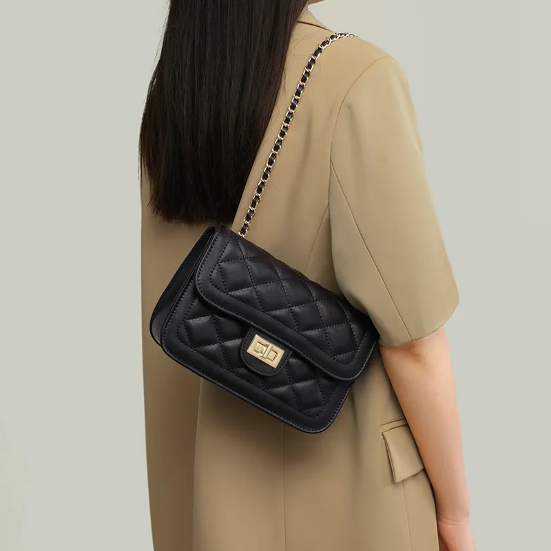 COMELY 소가죽 숄더 백, 크로스바디 백 레귤러 여성 블랙/에크루 - POIZON