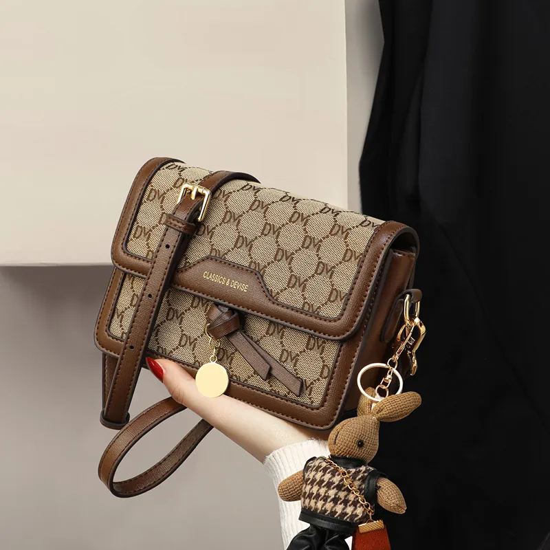 COMELY PVC와 텍스타일 스몰 스퀘어 백 원 숄더 크로스백 레귤러 여성 커피 - POIZON