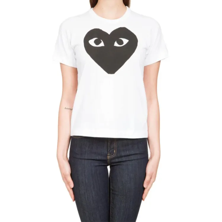 (W) 플레이 꼼데가르송 블랙 하트 티셔츠 화이트 - POIZON