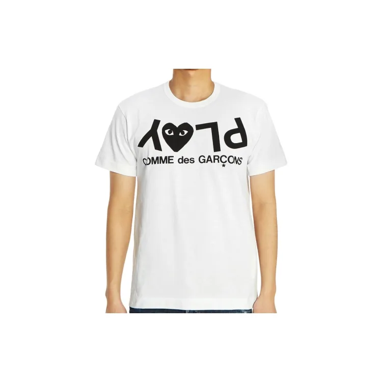 플레이 꼼데가르송 리버스 로고 티셔츠 화이트 - POIZON