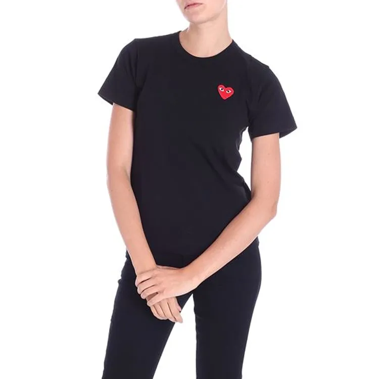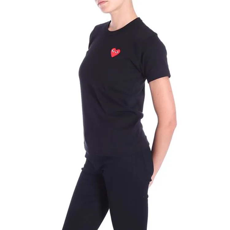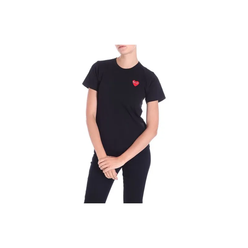 (W) 플레이 꼼데가르송 레드 하트 티셔츠 블랙 - POIZON